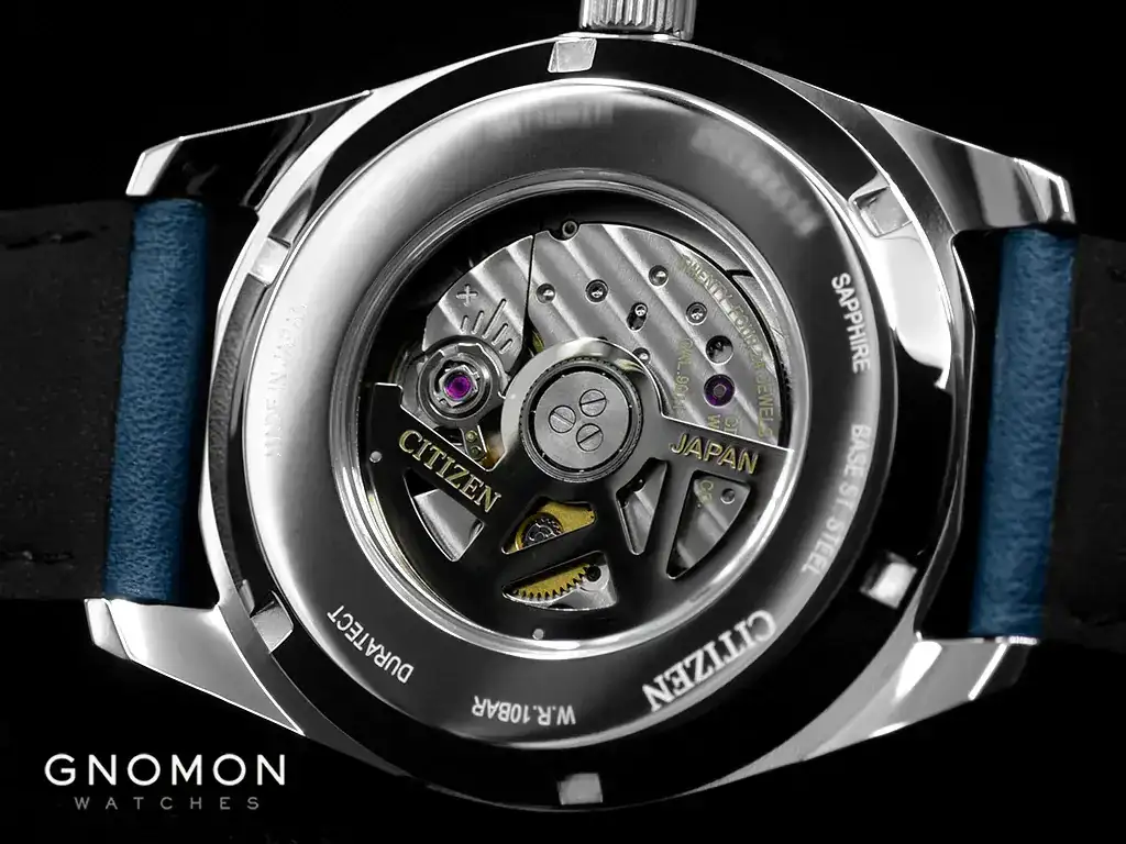 Hecho en acero inoxidable y con una caja bien terminada que alterna pulidos con cepillados, recubierta del tal Duratect de Citizen que según ellos, ayuda a proteger el reloj contra rasguños en el acero. Con un diámetro de 38,2mm, una altura de 12mm y un L2L de 46,5mm, se presenta como una opción "asequible" en medidas para muchas muñecas. En mi opinión, por el estilo del reloj creo que no le falta ni un solo mm y que para una muñeca como la mía de 17,5cm es un tamaño ideal.
