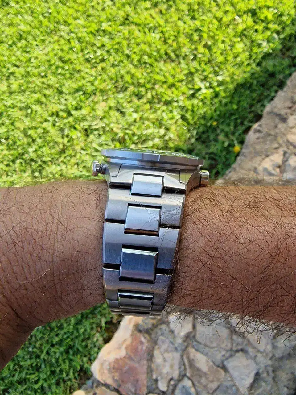 Y aquí las fotos para que podáis apreciar el grosor del mismo, mi muñeca mide con cinta métrica ajustada 18cm., así que se supone que hay que añadir un centímetro mas.... pues uso correa de 19.