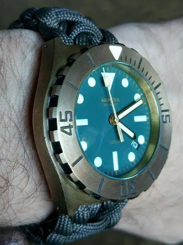 El sistema de cierre está muy chulo y es ultra-seguro, aunque hay que admitir que para ponérselo uno mismo es poco engorroso. Una lástima que no sea de latón también (eso ya sería espectacular...), pero creo que no le va del todo mal. He de admitir que lo he cepillado para "matarle" el brillo, ya que venía pulido/cromado.