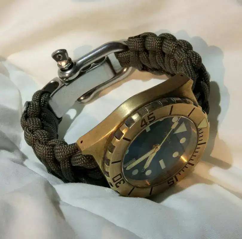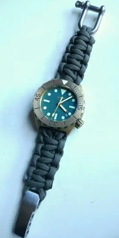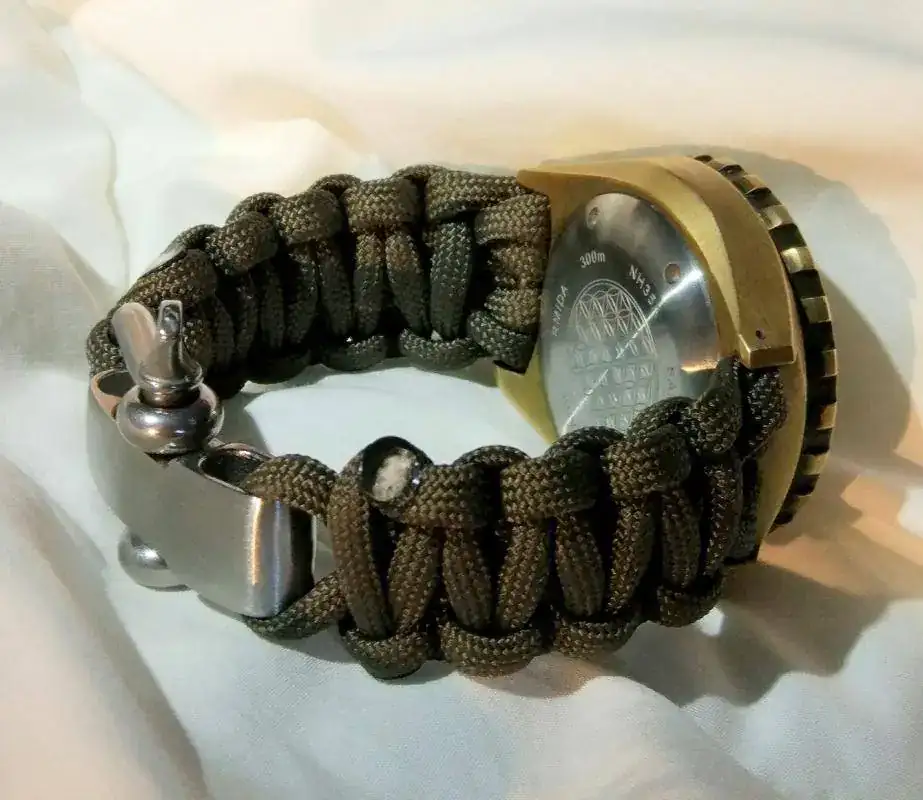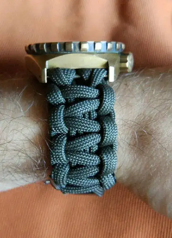teniendo en cuenta que el verano está a la vuelta de la esquina y que en cualquier momento puede darse la situación de que me zambulla en alguna piscina/mar/río, decidí que era el momento de hacerme con una correa que se pudiera poner en remojo sin estropearla (la de caucho que venía "de serie" no me mola). Tras darle unas vueltas decidí que, en vez de comprar otra canvas similar (esta vez sin piel), ¿por qué no probaba con algo distinto?