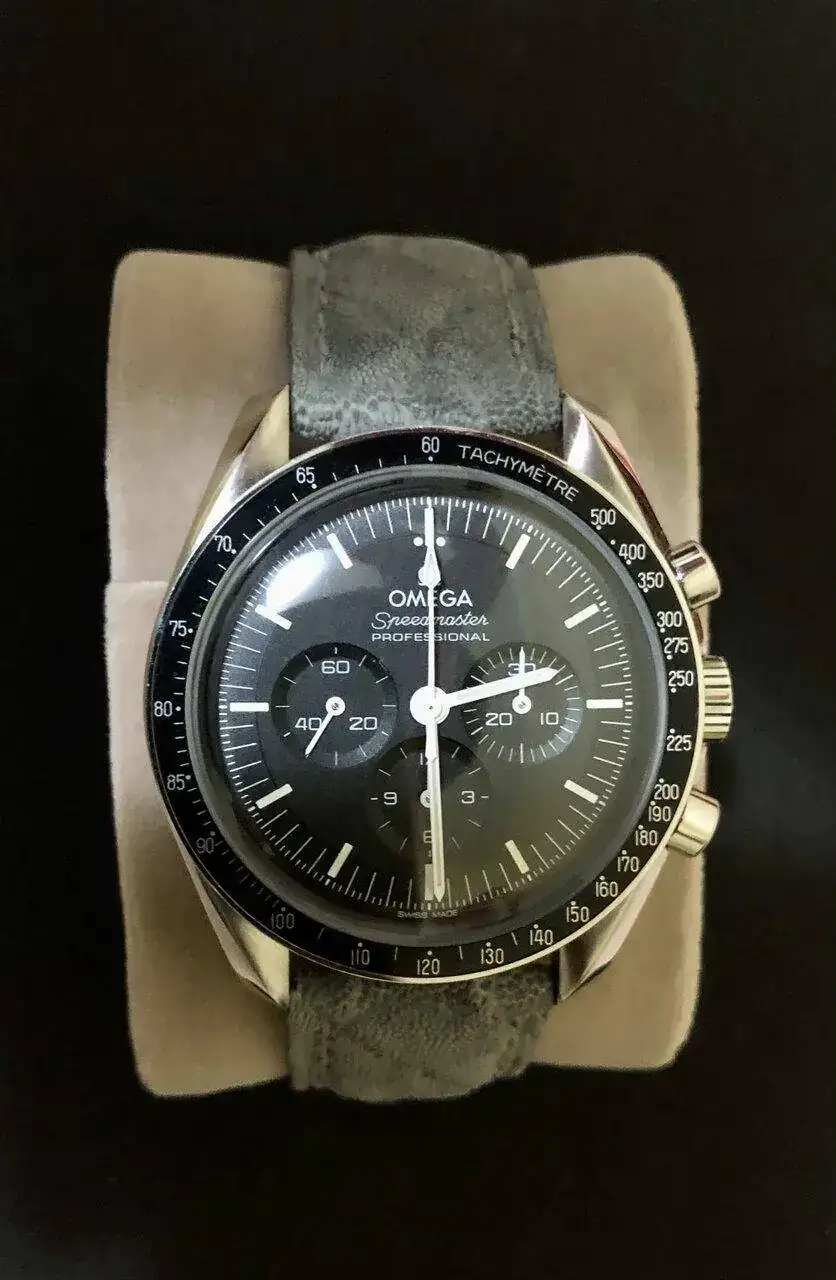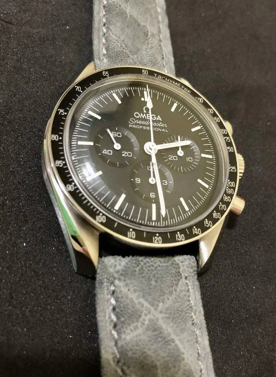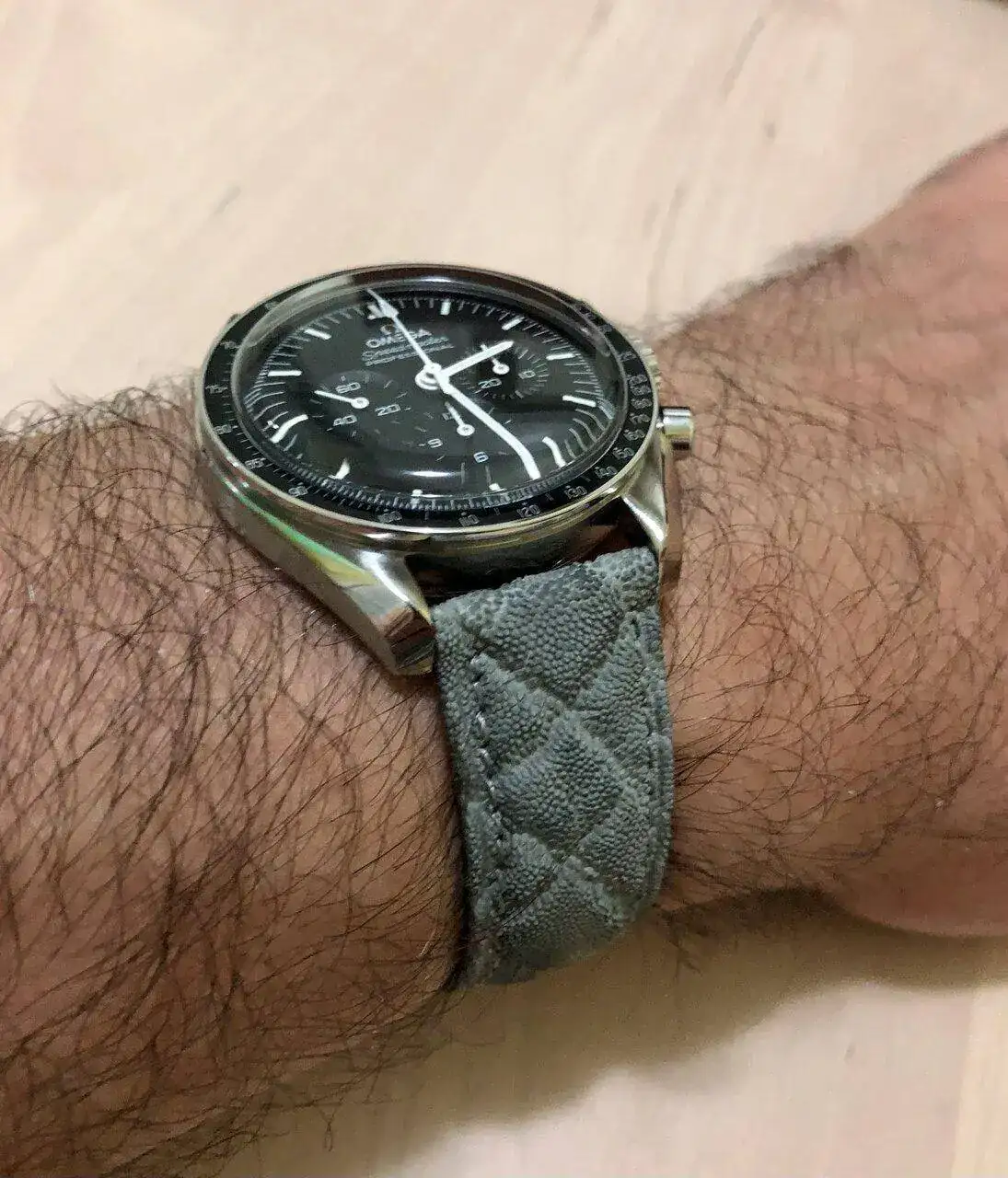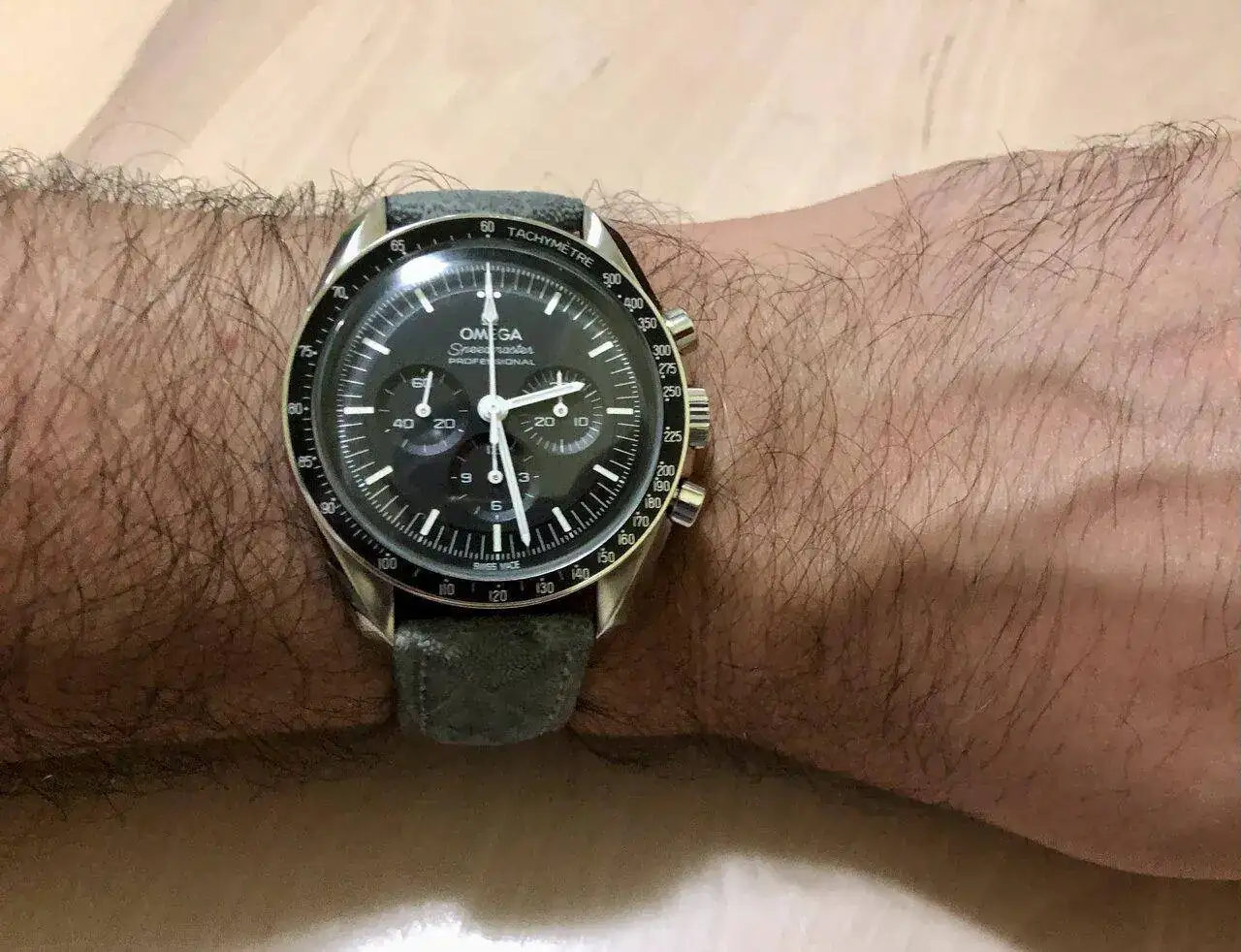 Llevaba tiempo queriendo poner una correa de piel a mi Speedmaster Pro de cara al otoño/invierno. Tengo varios relojes con armis y el de este reloj no sé qué pasa, pero no consigo terminar de sentirlo cómodo… tengo muñeca de 18,5 cms. y o me aprieta mucho o me cabecea, no le encuentro el punto.