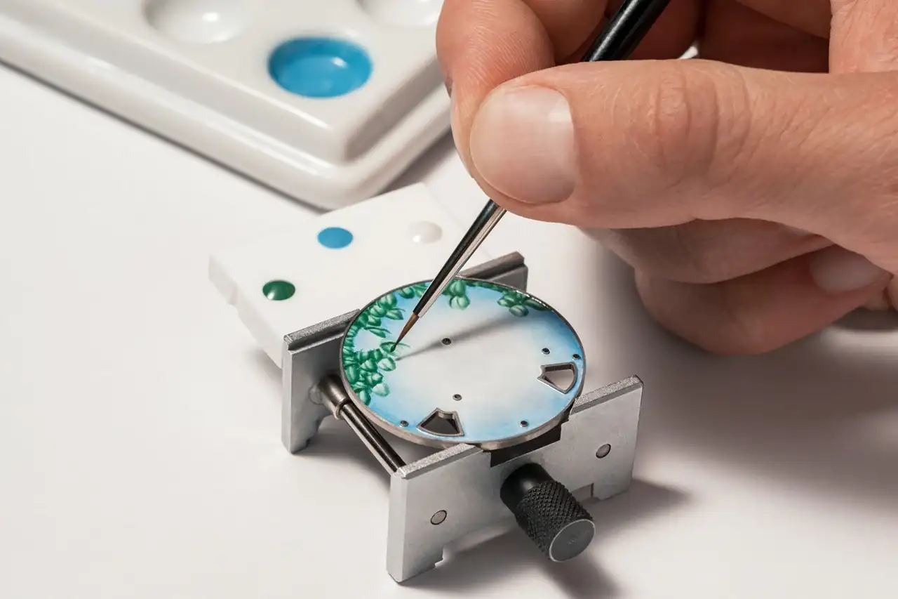 Esfera: oro de 18 quilates 4N, miniatura opaca y esmaltada Grand Feu