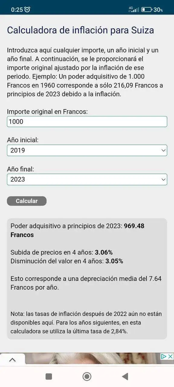 Si aplicamos el 3.06% de inflación suiza debería costar 1295 CHF, que al cambio actual serían....