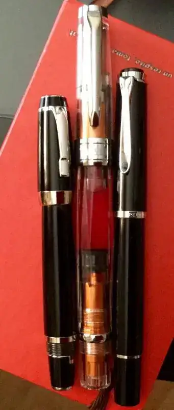 Pues te pongo unas imágenes para que veas la diferencia, la más pequeña mía es la Bohème y la Pelikan, como verás hay unos centímetros. Pero si las comparas con mi Platinum y la Safary son muy pocos mm e incluso iguales: