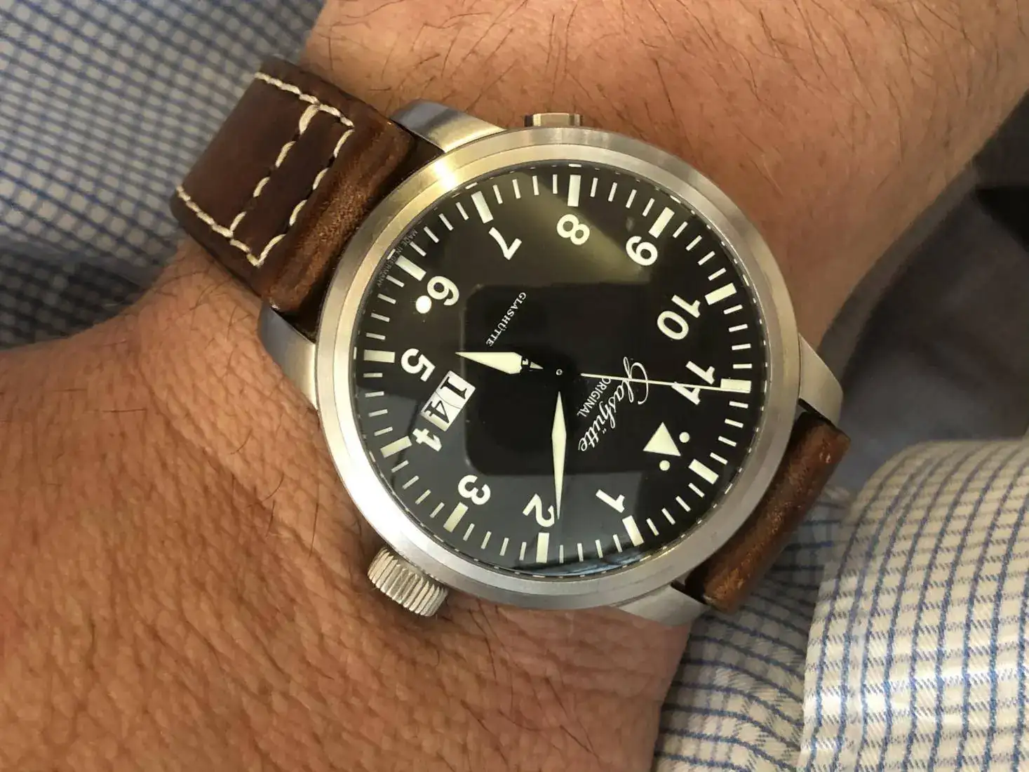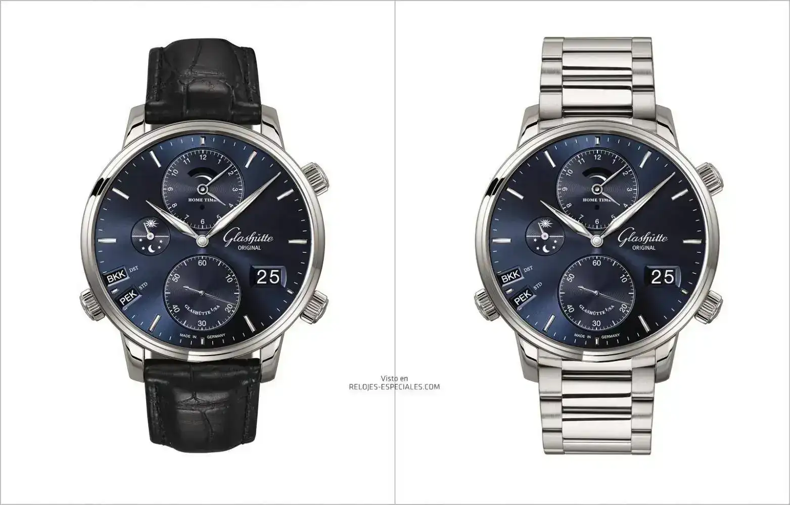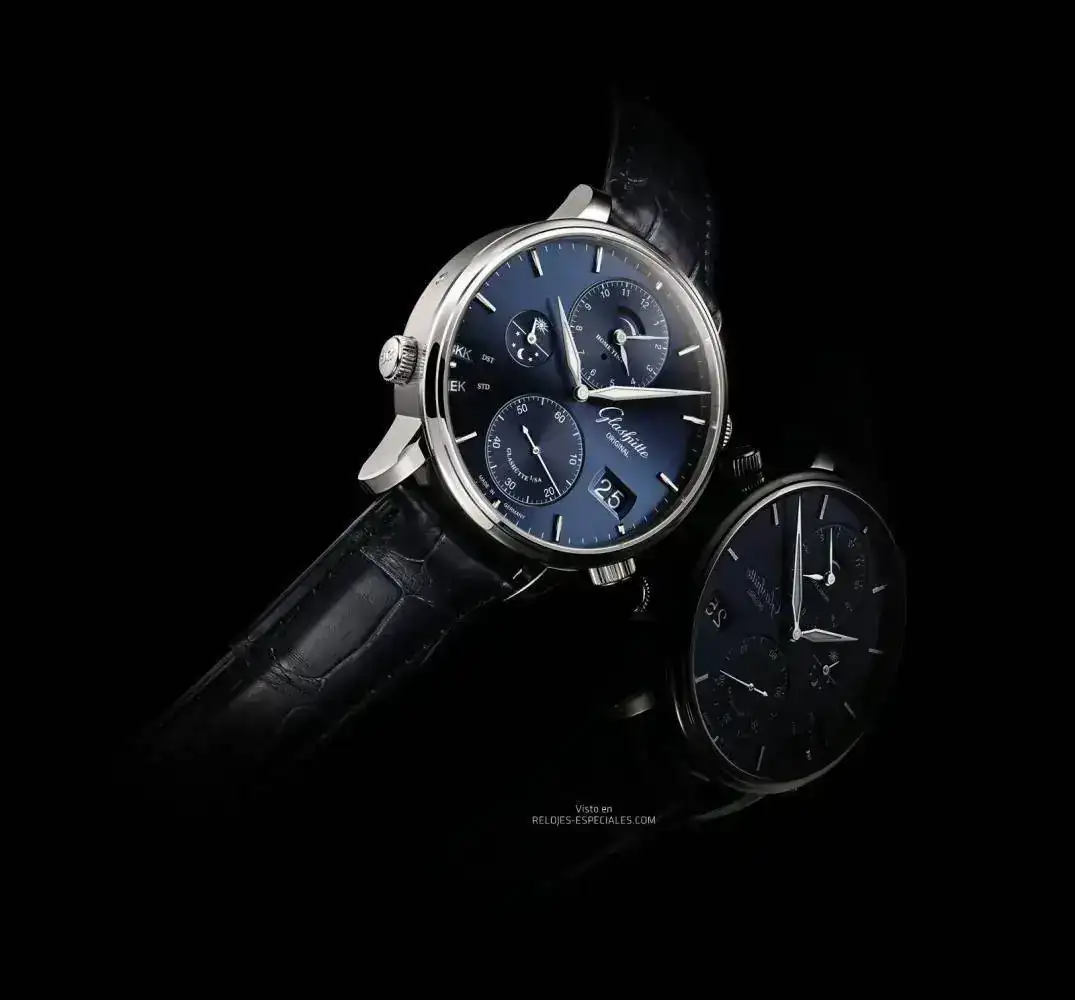 El Glashütte Original Senator Cosmopolite en caja de acero (44mm) y esfera azul tiene un precio de 20.700 € con correa de aligátor azul y hebilla desplegable.