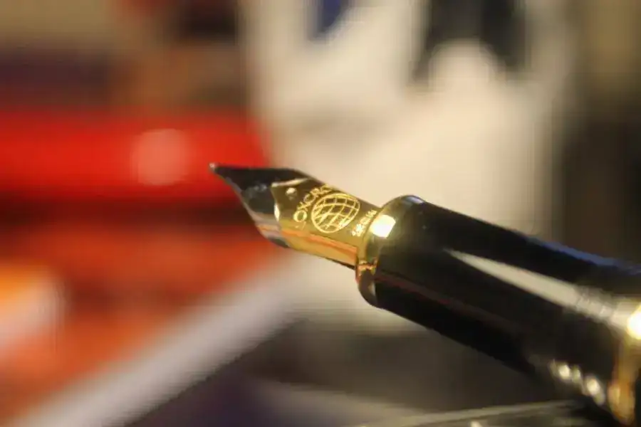 El Plumín, en este caso, es de acero chapado bicolor, igual que el que calzan la Corinthian y Caravel (esta última con un grabado de una carabela).
