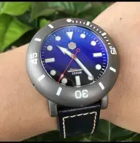 Este espejo cuenta con un cristal de zafiro y un anillo cronógrafo de buceo. LaTitaniumLa carcasa está equipada con un movimiento mecánico automático sw200 suizo. De cuero CorreaHebilla de ajuste fino de buceo de gama alta,Muy cómodo, 2000 metros de profundidad a prueba de agua, para garantizar una natación y buceo normal, C3 es una característica verde superbrillante, cubierta con submarinos retro, muy interesante. Correa de cuero, muy cómoda.