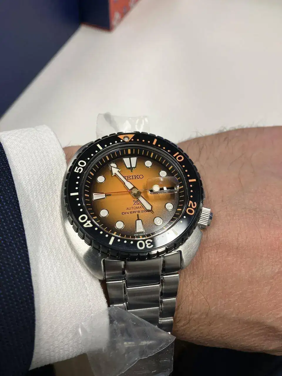 En el caso de este que nos ocupa es este Tortuga Rey, con las características bien conocidos ya por todos, sus 45mm de diametro un grosor de 13,22mm, su 4R36 de 24 joyas con 41 horas de reserva de marcha, bisel ceramico, cristal de zafiro (con lupa) que si bien tiene sus detractores, a un servidor muy proximo a los 50 le viene de perlas, en definitiva un señor diver muy muy muy especial.