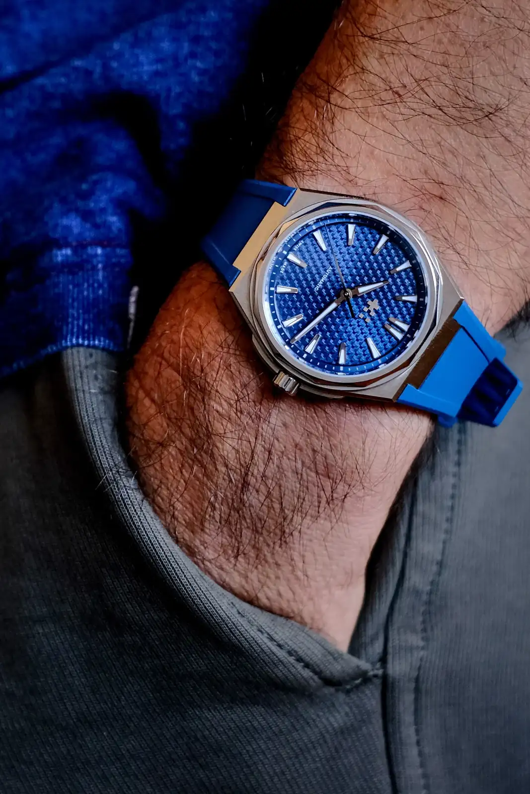 La experiencia ha sido muy positiva. El sistema CTS hace que el ajuste sea rápido y limpio, y la correa le da un cambio de personalidad bastante marcado al reloj. En mano, la textura es distinta a la del dial y al principio tenía mis dudas, pero en la muñeca queda sorprendentemente refinada y combina mejor de lo que esperaba. Es la misma goma y textura que usa en sus correas de sailcloth, pero con CTS - que es una delicia para los de muñecas finas: desaparecen las odiosas colitas.