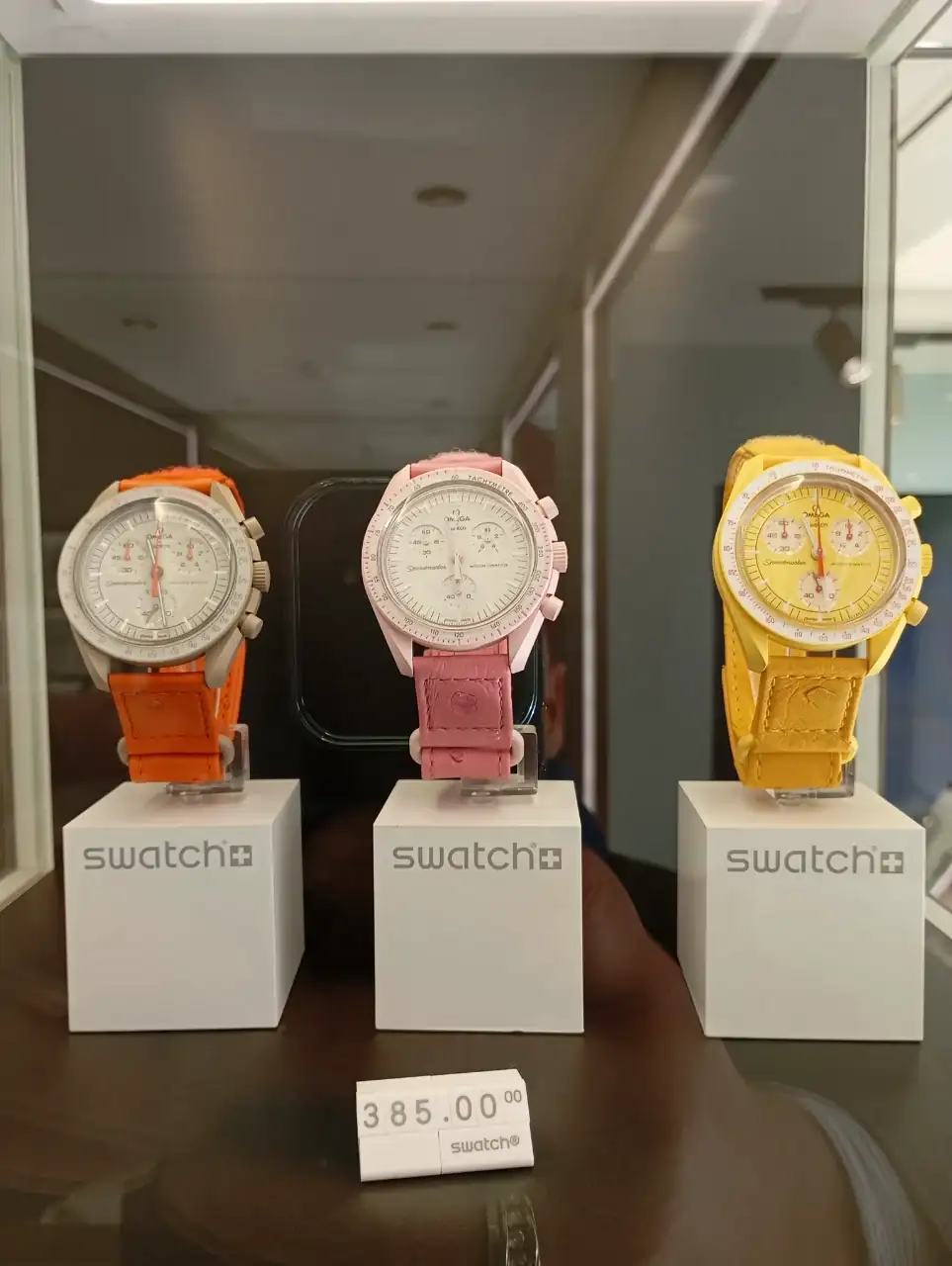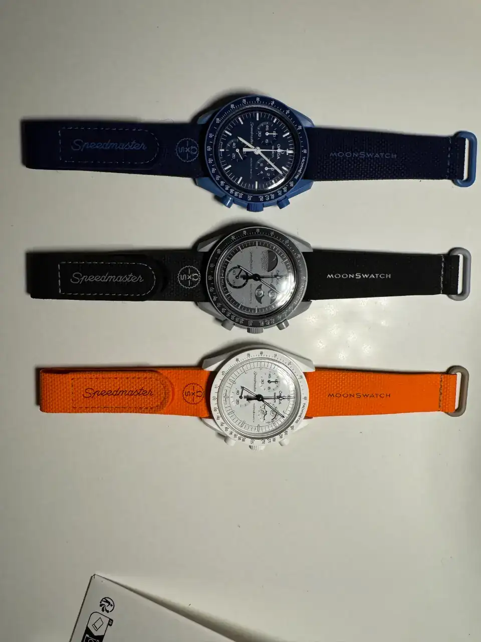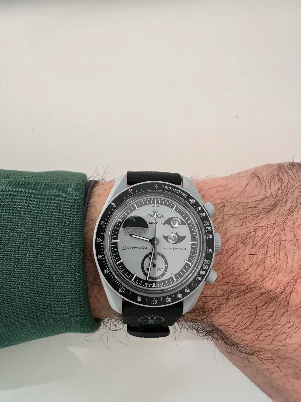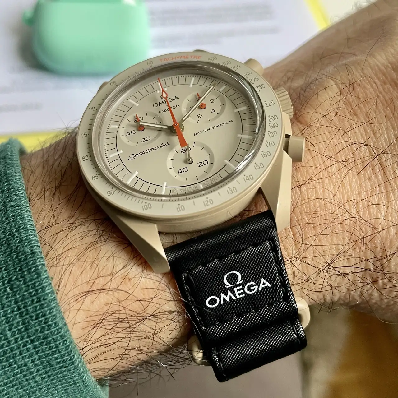 Personalmente no me convencen bien vistas y no veo sentido en un Swatch por muy colaborativo que sea del Speedmaster, con una correa que hace que su precio sea superior a 110€ (ya que la de velcro tendrá su coste por lo que la de avestruz supongo tiebe un valor de más ce 130€...)