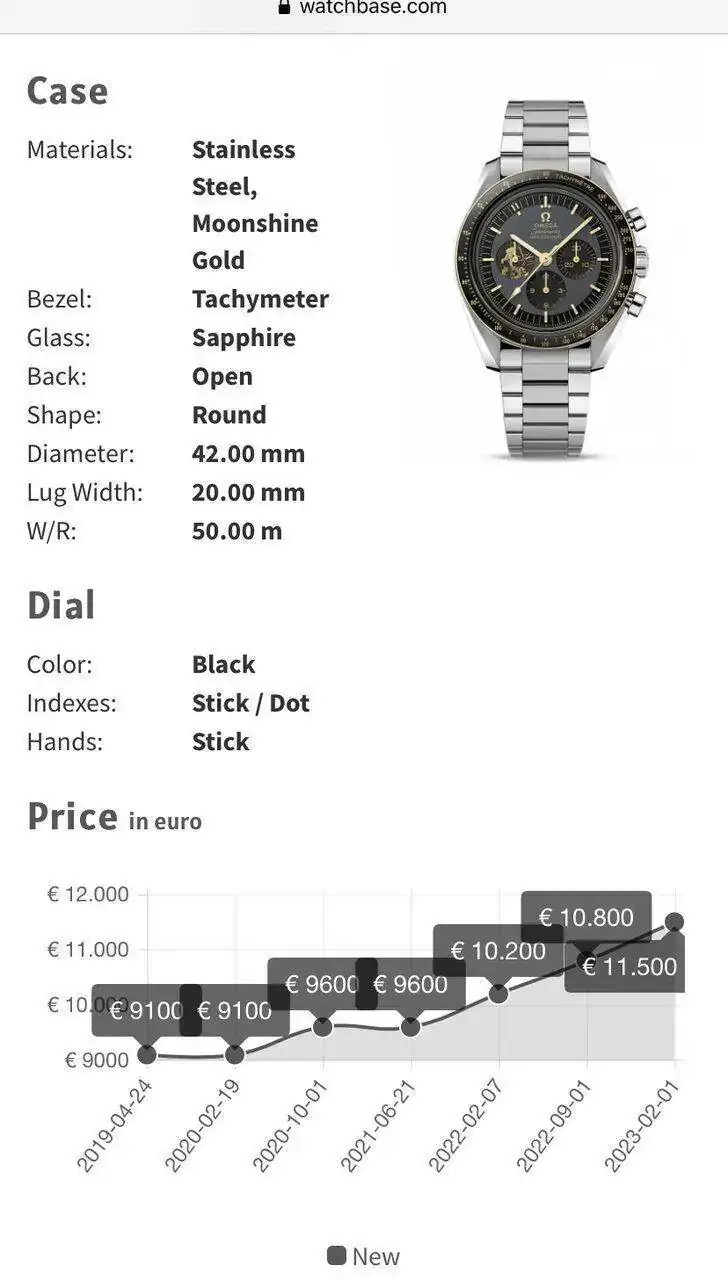 En el speedmaster: pago 3.300 euros más, lo que es un +106,5%.
