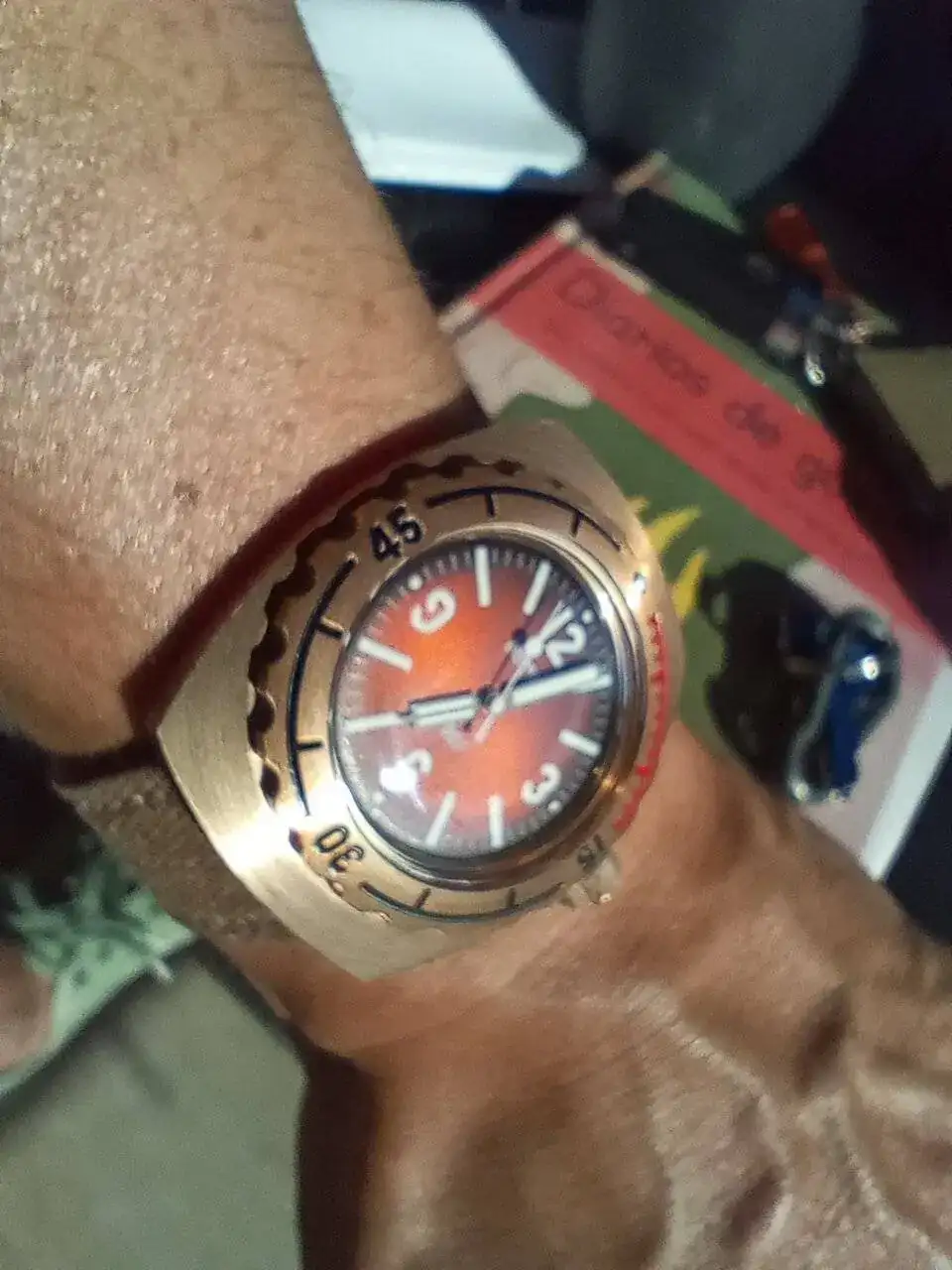 Muy bonito en esa combinación de dial, creo que es el que más le va con ese color marron o Cocacola.