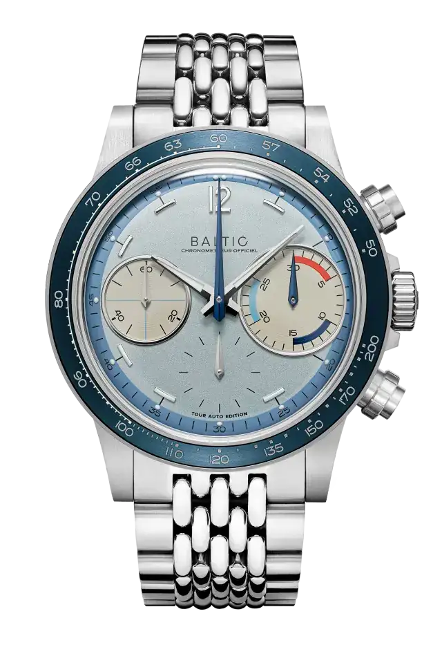 Our third year as the Tour Auto official timekeepers is marked by the evolution of our sports chronograph: meet the Scalegraph Tour Auto Limited Edition, our new chronograph water-resistant to 100M. Now available, limited to 400 pieces.