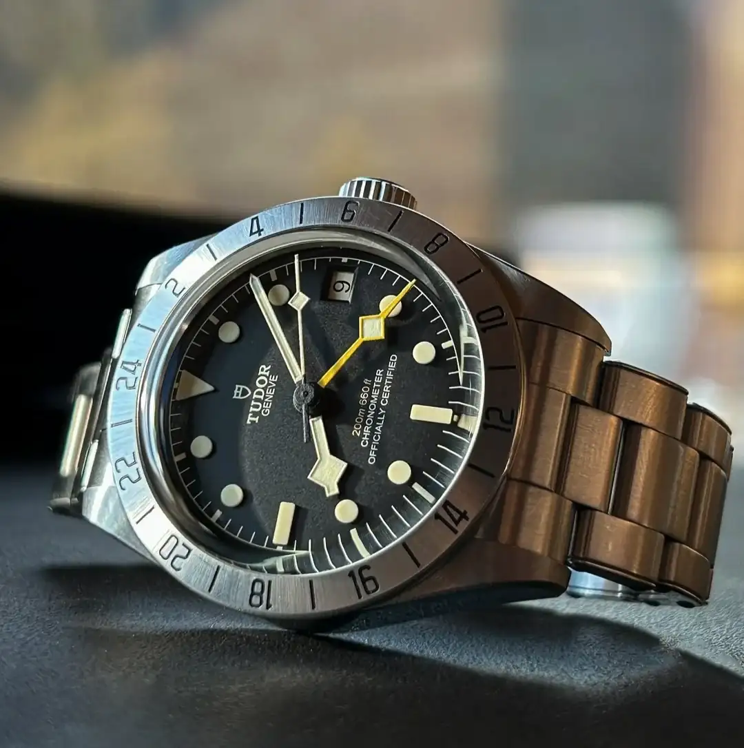 Es perfecto en medidas, la caja me parece más bonita o interesante que los Black Bay, por los ángulos, protectores, etc. Brazalete sin remaches que, aunque no se ven apenas cuando llevas puesto un BB, y no me disgustan, de poder elegir, prefiero sin. Cierre con micro ajuste y terminal de enlace hembra, lo que sumado a su ligereza, hacen que sea el reloj más cómodo, incluidos los de natos y correas, que haya llevado. Añade discreto y funcional. Con fecha, creo que me sobrarían los demás. El toque soleil le da ese punto interesante para no ser un "soso" negro.