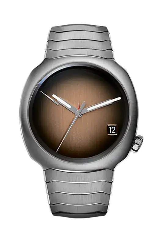 ), que derivó en la creación de una de las más simples y maravillosas estéticas para un reloj que jamás he visto. La broma era hacer un reloj esférico con un mínimo bisel y todo...