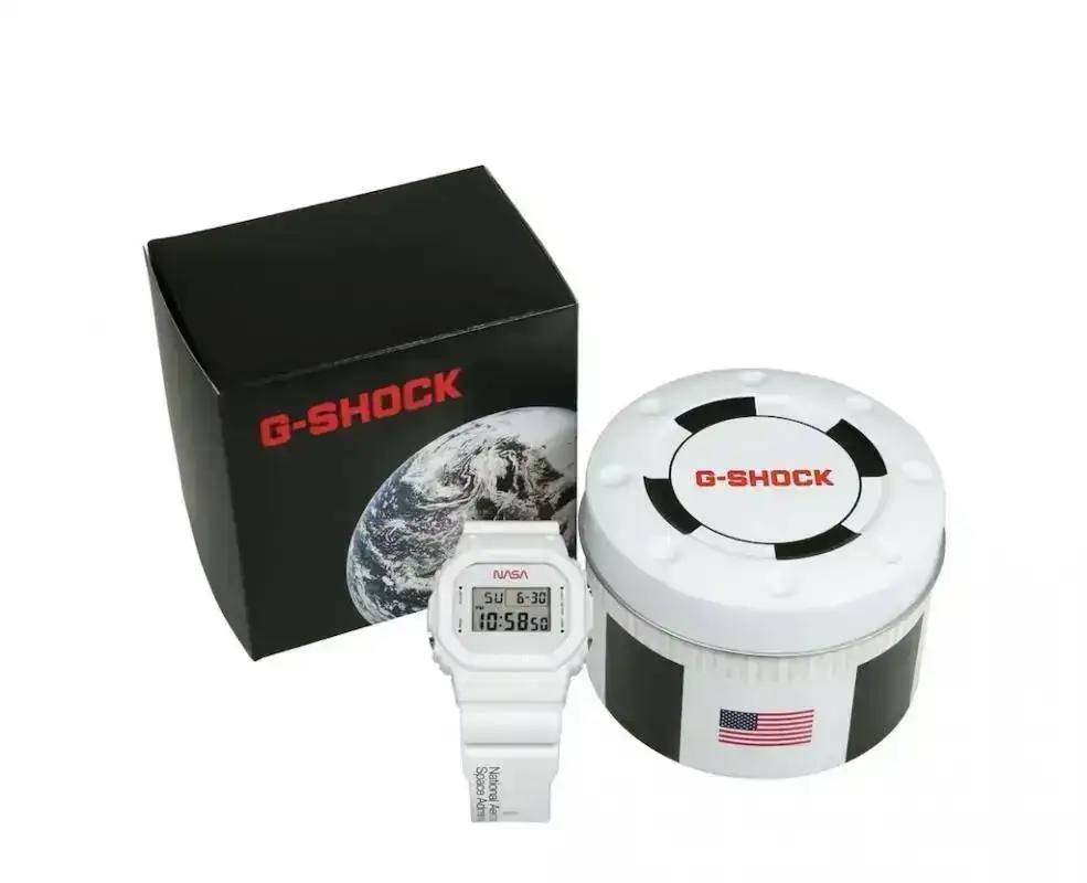 Sus características y dimensiones corresponden a las de un G-Shock 5600 pero decorado con los nuevos motivos de la NASA y la tapa trasera con la Luna además de la iluminación. La caja se asemeja al cuerpo del cohete Saturno V.