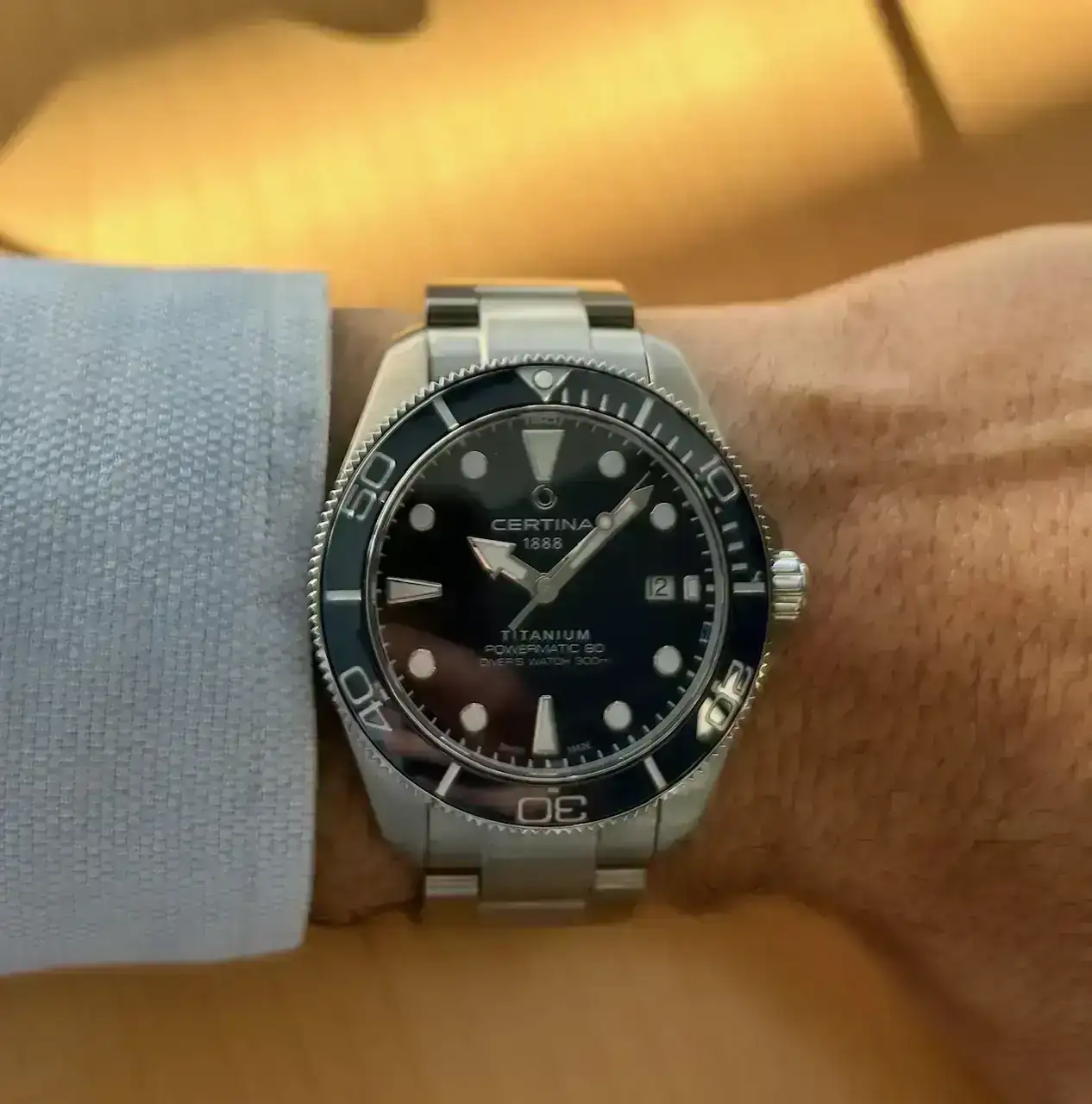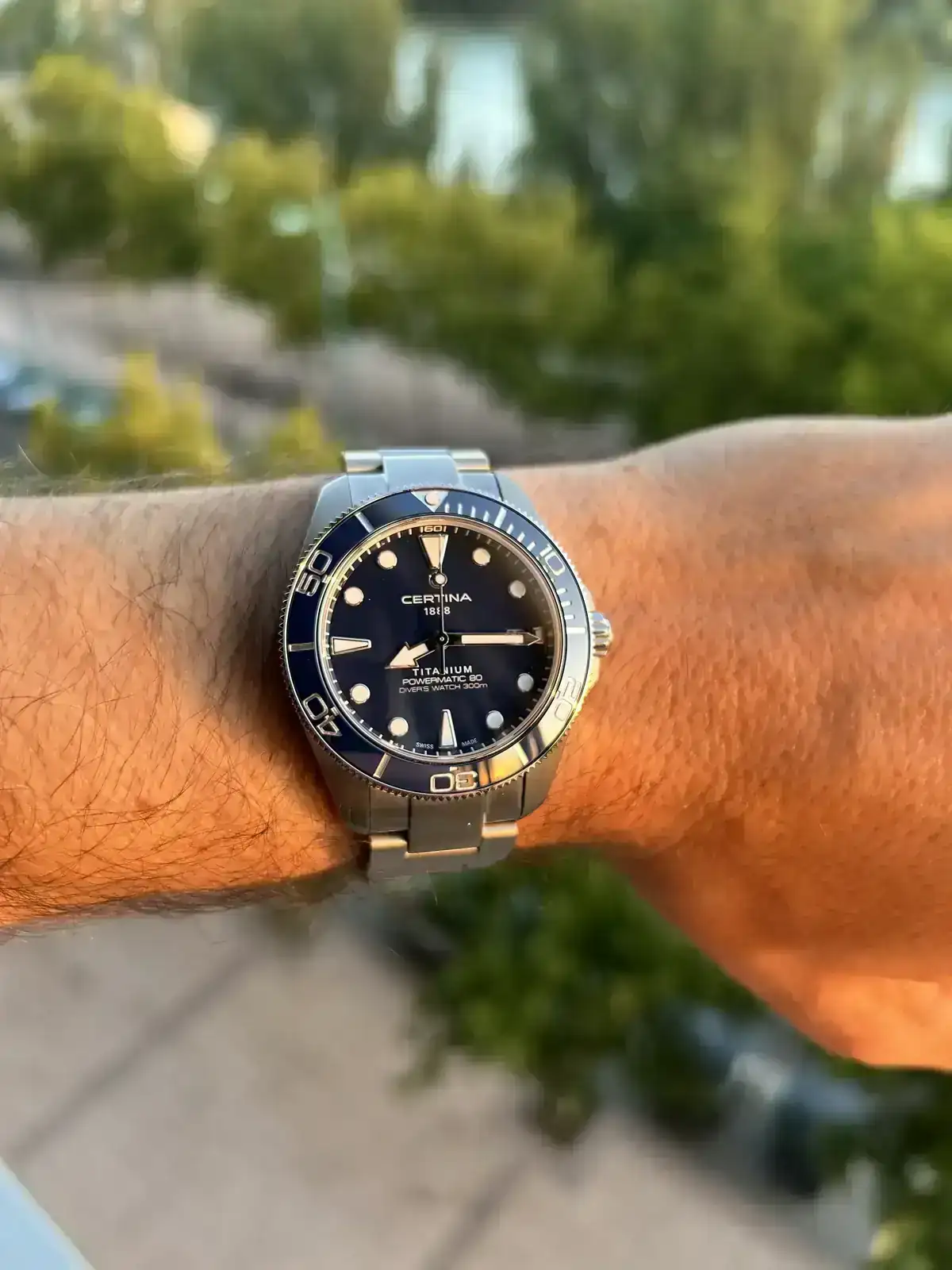 El Certina va a lo práctico. Es un reloj más herramienta, ligero a más no poder, comodísimo para llevarlo todo el día sin enterarte, y transmite robustez. No tiene ese refinamiento del Tudor, pero para un uso más despreocupado es ideal, porque no te da apuro darle caña o usarlo en cualquier situación.