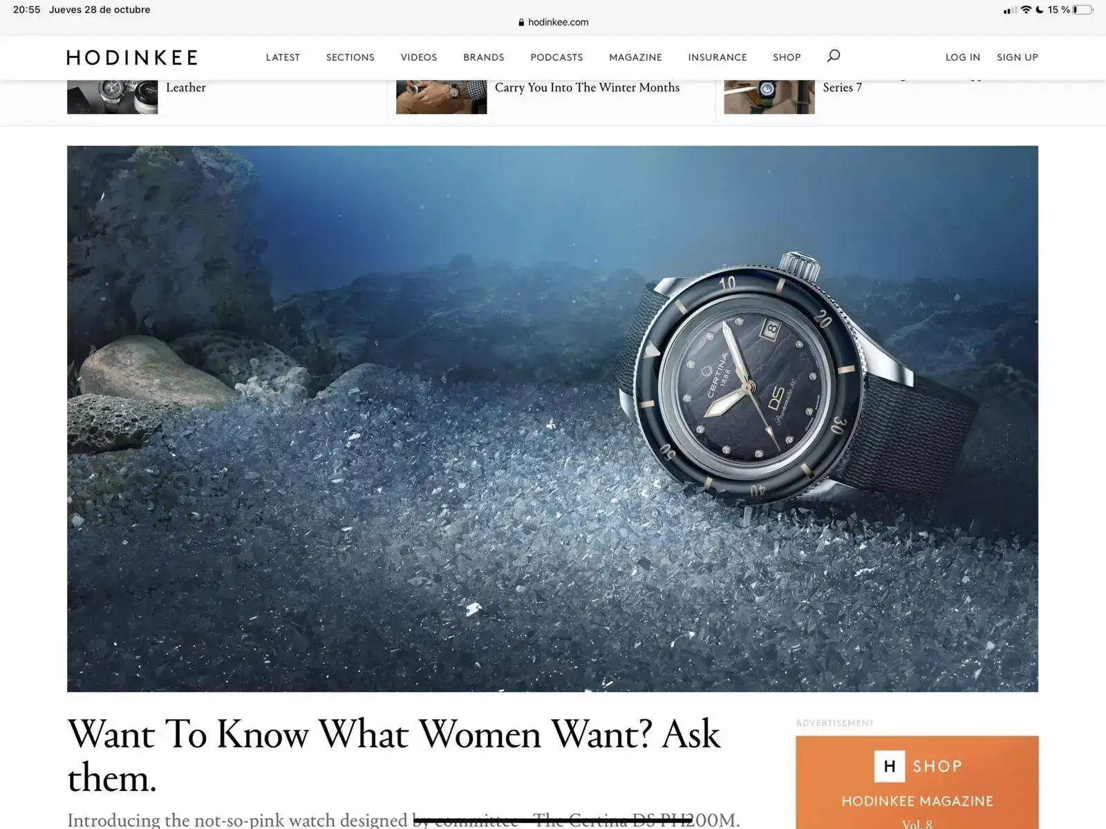 Respecto al reloj en esa foto parece un Fifty Fathoms… Y me parece perfecto para hombre también (esos diamantes de índices tan diminutos son hasta elegantes: y no me gustan nada los diamantes…).