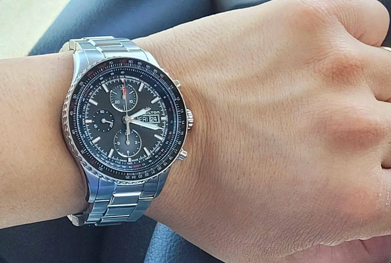 Te queda genial 🙌🏻 EnhorabuenaGracias a todos. La verdad es que es grande y además Hamilton suele tener un lug to lug más grande todavía, pero como tengo la muñeca plana, a pesar de ser de 17.5, no me queda del todo exagerado.