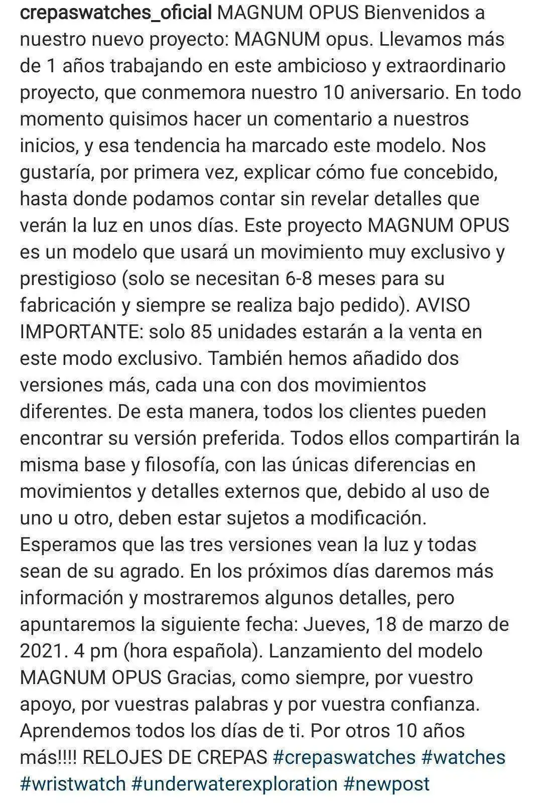 En el que van a usar un movimiento más exclusivo, solo 85 piezas. En las otras versiones habrá ETAs y Sellitas. Me imaginoEn que gordo?