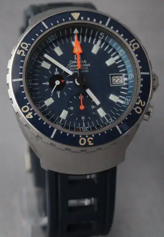 Lo de Crepas es realmente peculiar. En el fondo a una mayoría les atraen sus modelos, pero no son pocos los que quieren que renuncien a lo que son. "Demasiado grande", "demasiado alto", "tal o cual elemento no me gusta"... Ya sabéis que respeto absolutamente todas las opiniones y evidentemente, no son (hasta la fecha y con algunas excepciones, como el Tornado) para todas las muñecas. Eso es indiscutible...Pero simplemente por puntualizar, Crepas resucita relojes de buceo preferiblemente de los años sesenta y setenta, algunos minoritarios en el conocimiento de los aficionados (o directamente desconocidos) o que se fabricaron en escaso número (a veces tan escaso como una o dos unidades que descansan en un museo). El caso es que aquellos relojes eran así (o casi). Las medidas exactas del Omega Big Blue referencia 176.004 eran 43,1 mm de diámetro de caja, 52,5 mm lug to lug y (atentos) 16,4 mm de altura (casi 1 mm más). Sólo la caja pesaba 124,3 grs. Era una herramienta de buceo exclusivamente para profesionales, con un precio estratosférico para su época y del que se fabricaron no más de 7.000 unidades. Encontrar hoy uno medio decente y sin elementos sustituidos (por el trato que recibieron) es francamente difícil, y una unidad NOS directamente imposible, porque ya no existe. Sus precios actuales rondan los 7-10K euros.