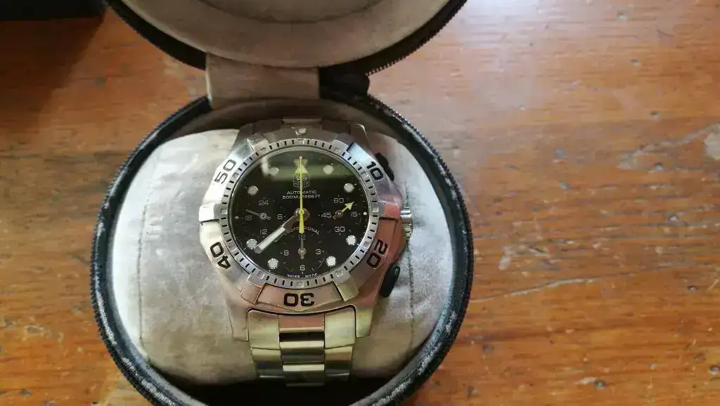 Muy buenas tardes a tod@s. Hace tiempo comente que tenia la opcion de hacerme con un tag heuer Aquagraph por un precio muy bueno, aunque el protagonista en cuestion estaba bastante "usado". Me daba algo de miedo comprarlo por que no lo podia ver en persona por la distancia que nos separaba, y al ser un reloj "herramienta" podria haber tenido una vida muy dura ( es del 2005 ).