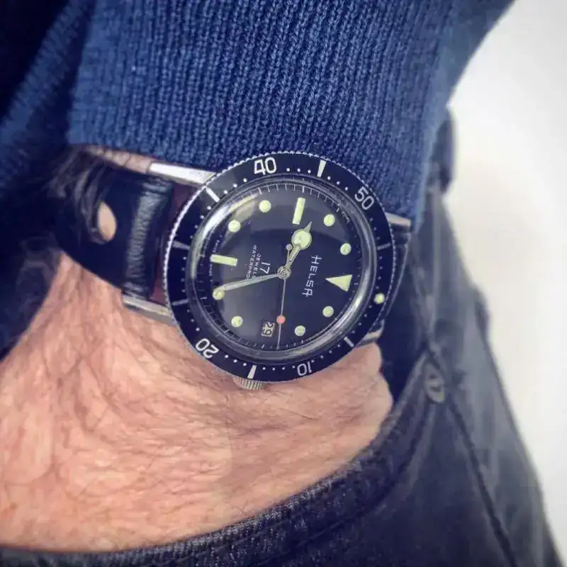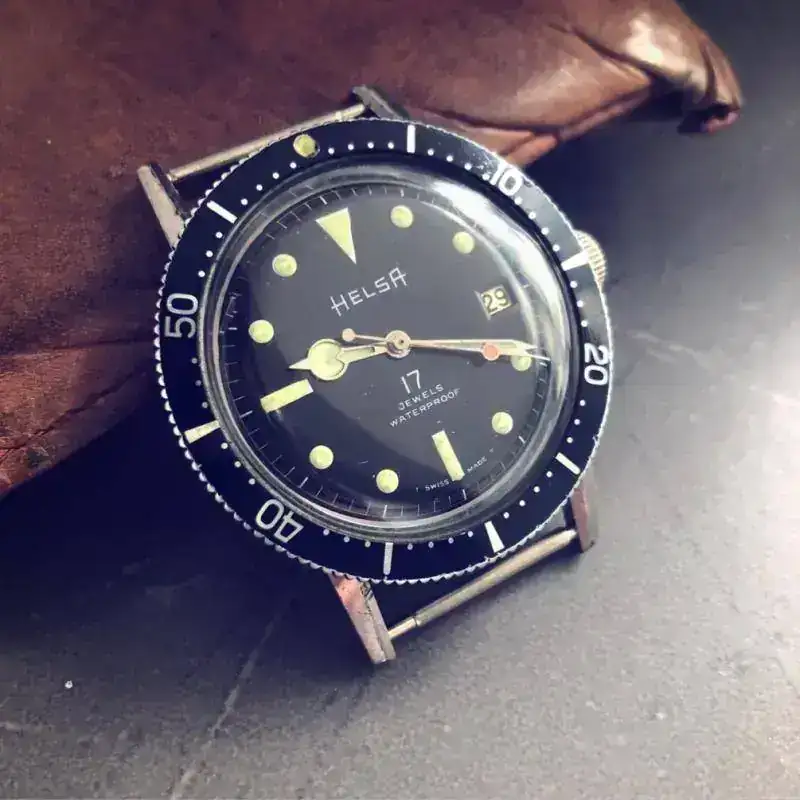 En mi búsqueda incesante de relojes de los 60,70, Divers especialmente, que me atraigan estéticamente por su armonía, equilibrio y proporciones, me topé hace algún tiempo con este HELSA, de Ollech&Wajs.