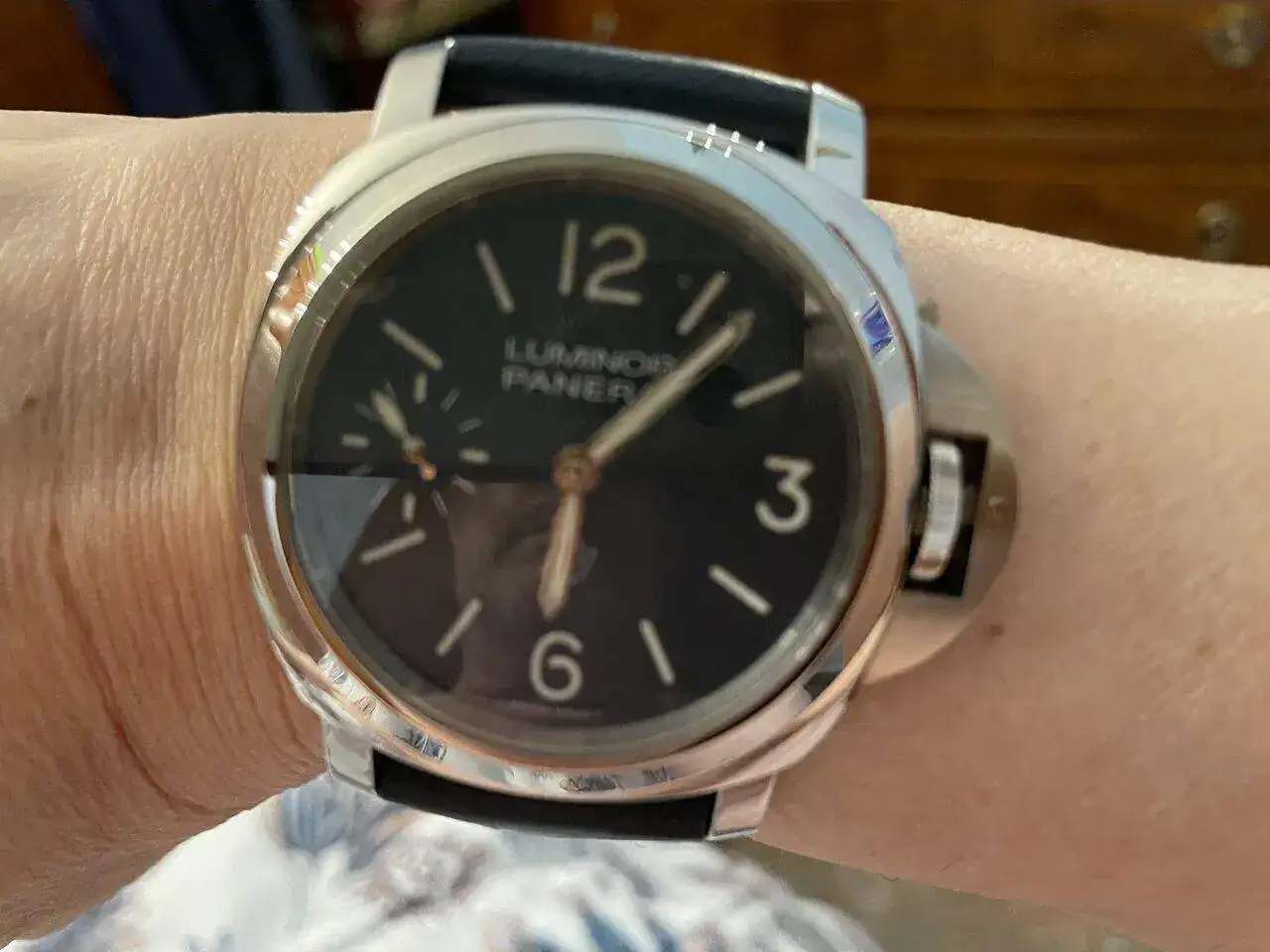 Acabo de recibir mi nuevo Panerai. El reloj es bonito, pero comparado con mi 111 se queda un poco deslucido, falta consiste y peso, parece de juguete.