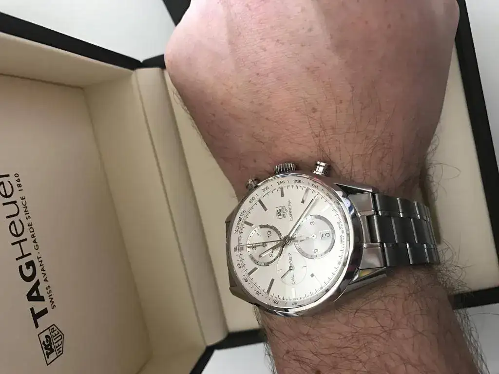 Pues hoy he recogido un nuevo reloj, se trata de un tag heuer carrera calibre 1887, me transmite una sensación fantástica , la esfera me encanta, el tacto del chrono genial. A pesar de tener un tamaño comedido 41mm se ve más grande en la muñeca. El calibre visto me encanta.