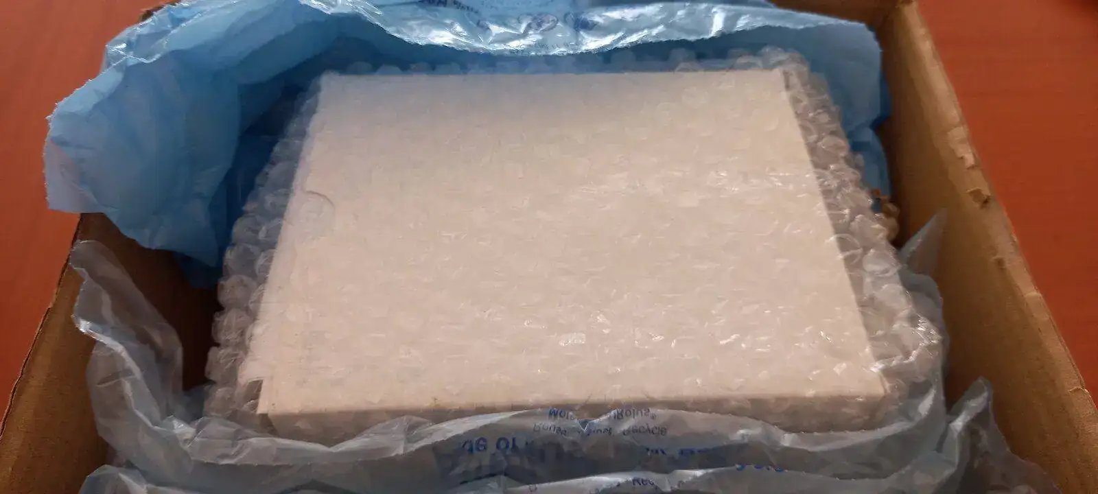 Una vez abierto, una caja blanca de cartón muy bien protegida con plástico de burbujas, ideal para resolver la próxima CRI...