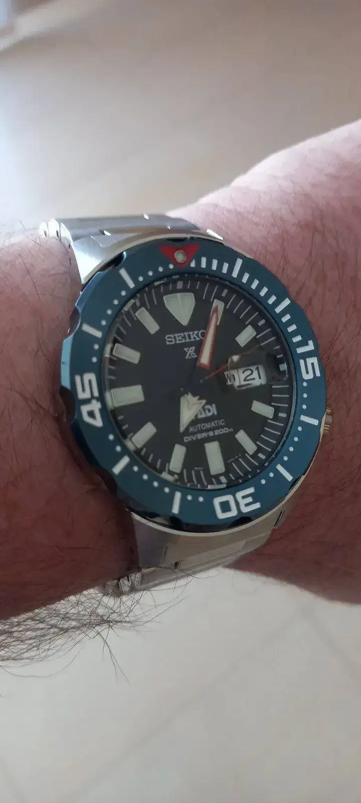 Aquí ya se ve que es un Seiko, pero la medida de la caja es un poco mayor que a la del resto de mis Seiko.