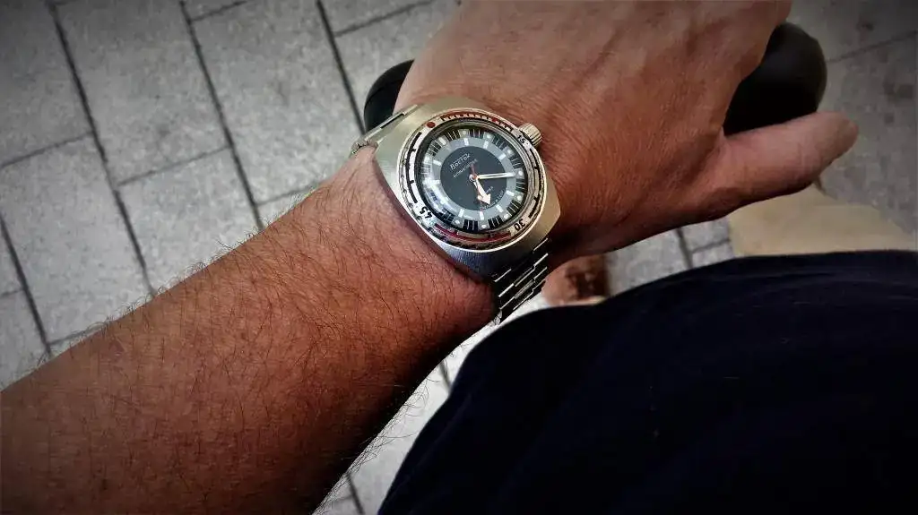 Misma máquina (creo, la 2431) y caja, corona de acero mas "industrial" de la que estoy enamorado, 200 metros igual, una trasera espectacular y la mitad de precio y con fechador. Venga, conjunta: