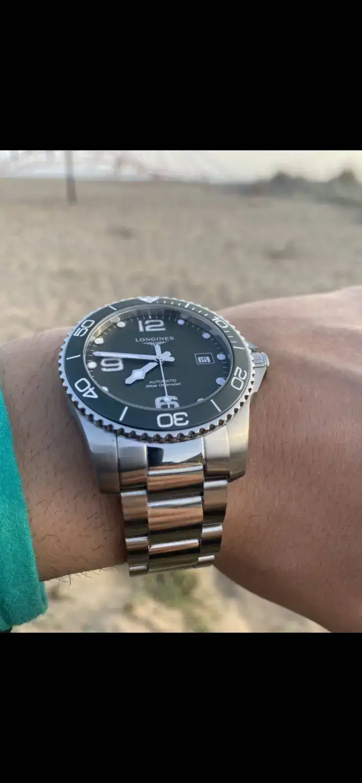 Esta semana le compre a un estupendo forero el mega conocido Longines hydroconquest en esta ocasion cn bisel ceramico y color verde, q decir que ya no sepais o se aya hablado en el foro, las sensaciones que me trasmite son muy posisivas, el color del bisel segun como le de la luz se ve de un color o de otro, realmente tienen razon los compañeros que dicen q calidad precio es de lo mejor del mercado, gracias lampar x el buen trato y rapidez de hacer la transición, no os mareo mas y pongo unas fotillos, espero q os gusten, un saludo compañeros