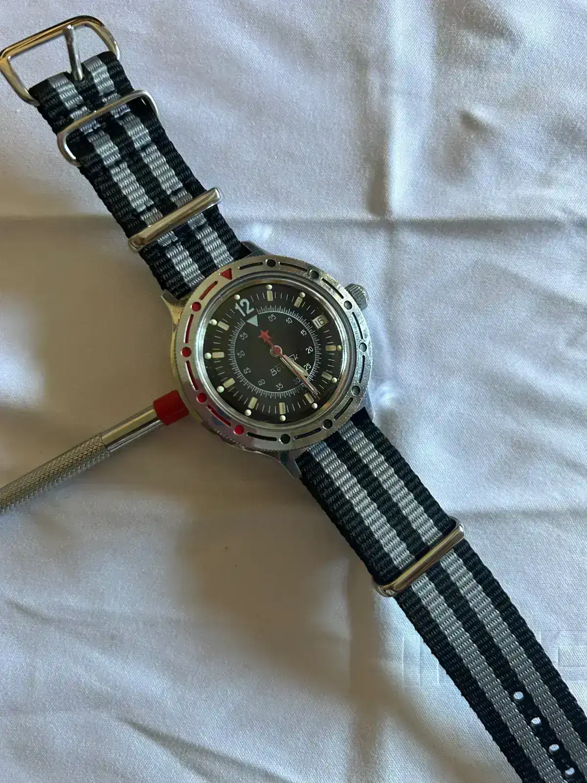 Os presento a un nuevo miembro de la familia, un Vostok Komandirskie de los que llevaban Red Star o Rising Star (creo). Llevo un tiempo buscando información y no he encontrado este modelo, aunque asumo que habrá cientos de modelos Vostok así.