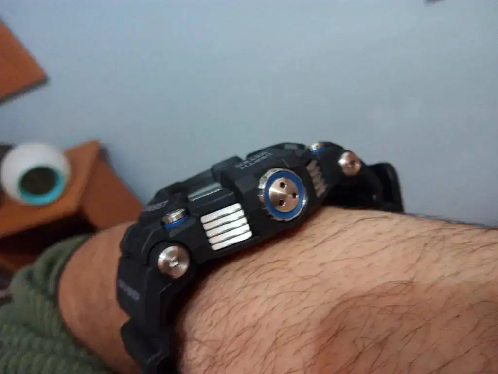 En éstas dos fotos se aprecia el contraste del acero de los botones con el color negro, difícil éste contraste con el modelo GWF-D1000B en azul ip.
