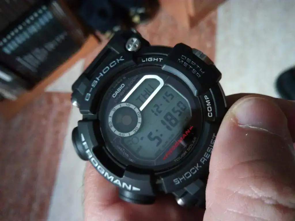 El dial como he dicho gracias a su cristal de zafiro todo es muy nítido, bien aprovechada toda la pantalla, destacar el marco tanto de la brújula que es circular en el lado izquierdo superior, y el marco derecho superior, está echo como con acabado metálico negro ip, y según cambias la postura del brazo incide el reflejo de la luz, y brilla y mucho, es espectacular, parece como si tuviese alimentación propia de la luz, aquí Casio a querido dar un toque de exclusividad en los materiales, luego en las fotos lo explicaré con detalle y nada compañeros podría seguir todo el puñetero día, pero he de cortar ya!!! lo único que deciros que todo aquel que adquiera ésta maravillosa máquina, no se arrepentirá, ahí van unas fotitos un saludo.