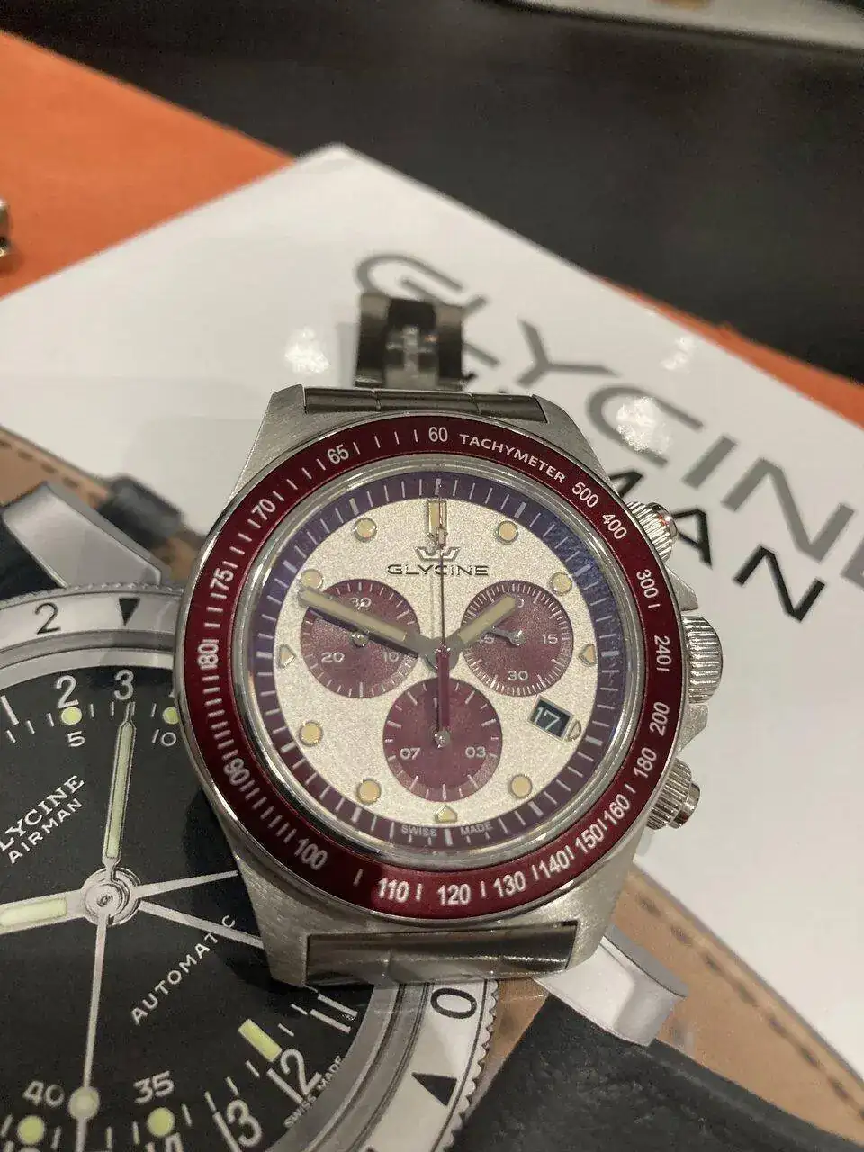 Glycine ha sacado un nuevo Combat chrono en cuarzo. Varias combinaciones de colores, dial texturizado… a mi me llama este burdeos. No parece que esté disponible todavía en Europa, puede ser una edición para el mercado USA, porque es donde lo he visto.