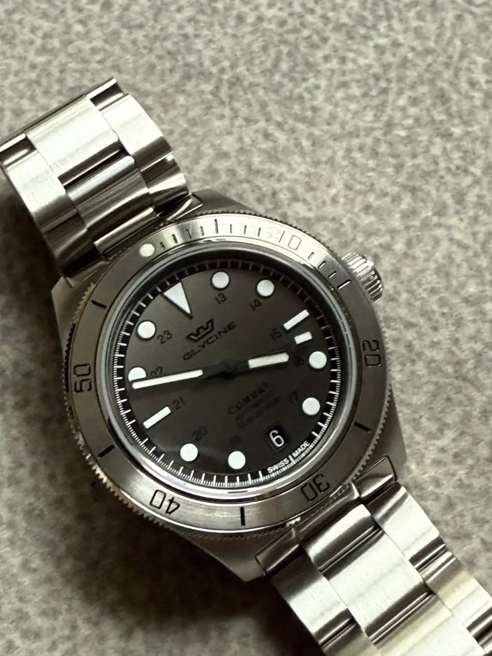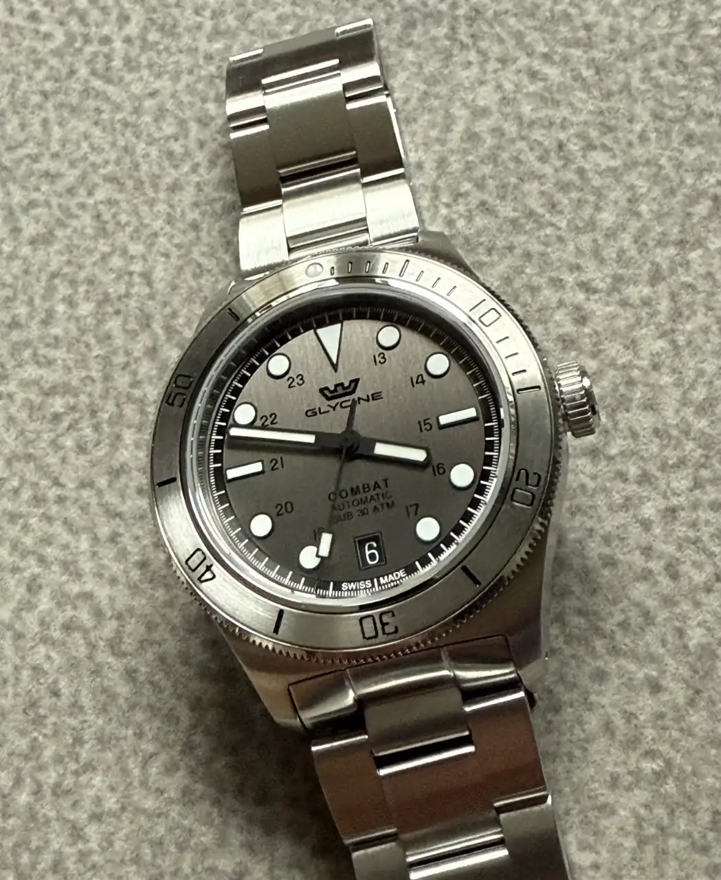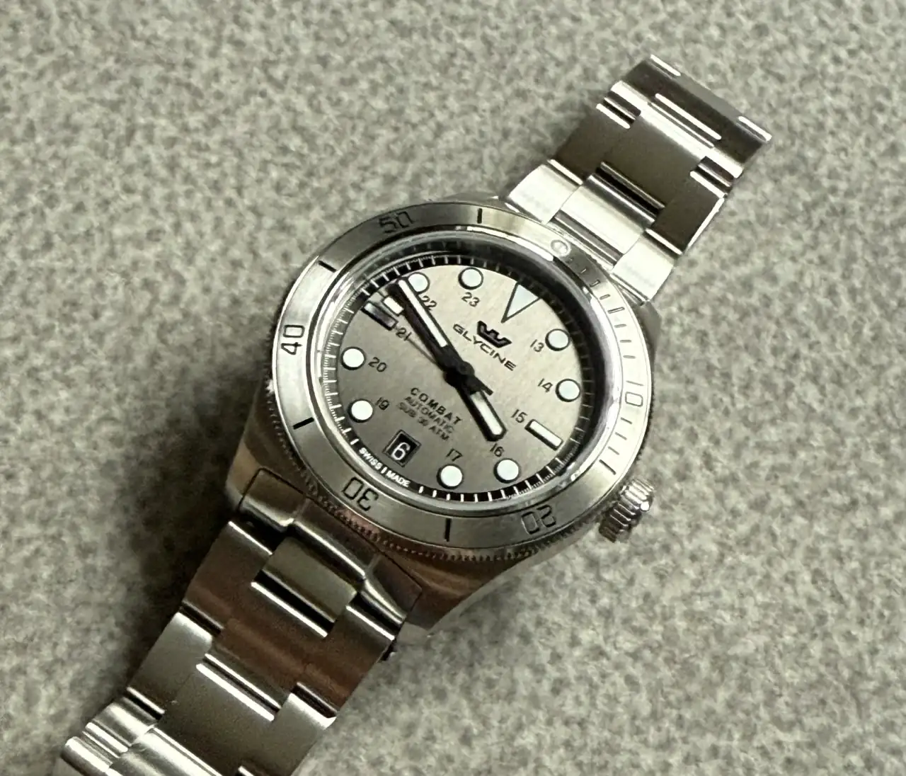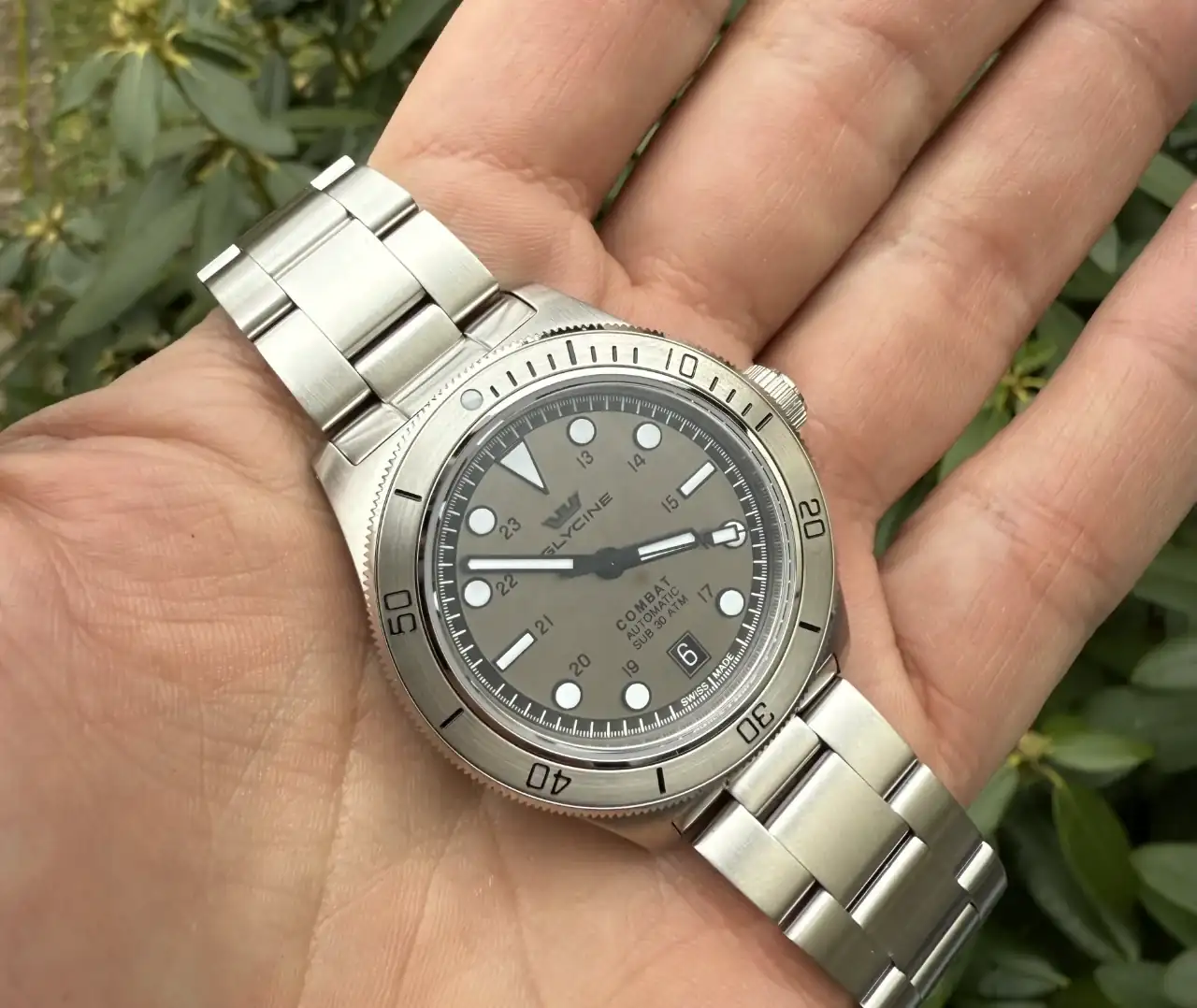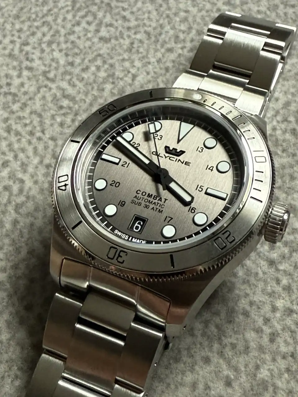 Ese verde es muuuuuy bonitoY siguen las novedades en los Combat Sub 300 de Glycine: al turquesa, gris oscuro y blanco, se les suma el gris claro y verde.
