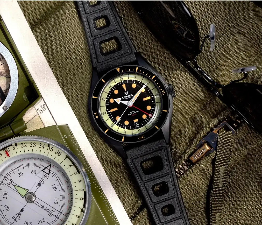 Me dejo de introducciones y misterios. El reloj que me he comprado y me llegará (me lo trae un amigo que vive en EEUU para ahorrarme aranceles) a finales de mes es el Lorier Hydra Zulu (adjunto foto). ¿Por qué lo he hecho? Primero me parece que Lorier están haciendo realmente bien las cosas con transparencia y honestidad y unos precios realmente competitivos. Segundo porque, como he dicho, no tiene nada que ver con el resto de mi caja. Tercero porque tiene un rollo retro aventurero que me recuerda un poco al Seiko Arnie pero en elegante con ese cristal plexi Hesalite que le da un rollazo en mi opinión. Y cuarto, pero también super importante, porque por 560 € me estoy llevando un GMT de viaje (flyer) con maquinaria Miyota 9075.