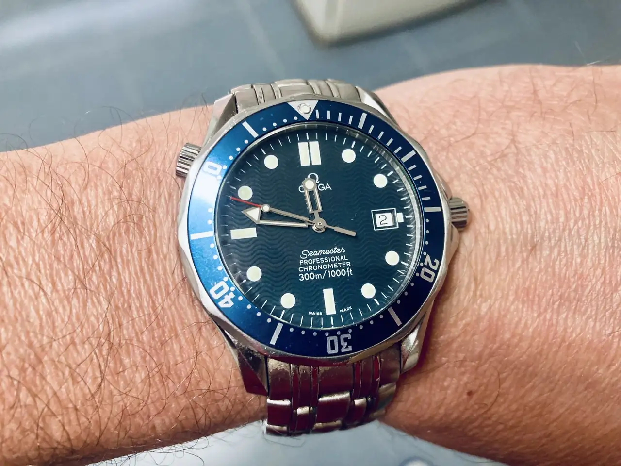 - Omega Seamaster 300m ("Pierce Brosnan" o olitas): el reloj de cuando acabé la universidad. La correa no es la más cómoda del mundo, pero me parece elegante y me sigue gustando mucho a pesar de que lo tengo desde hace 25 años. No lo venderé nunca.