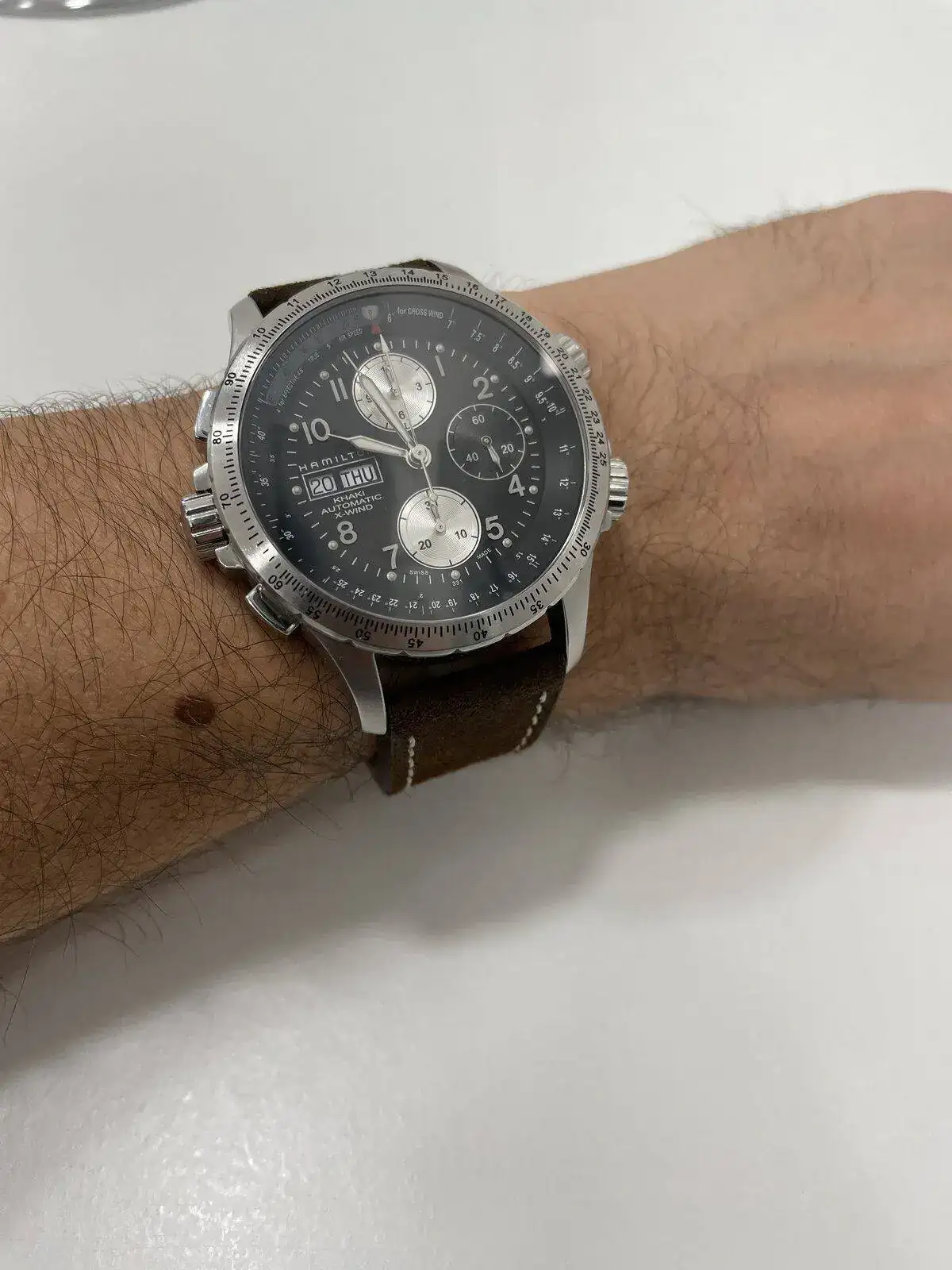 Así que aquí está mi Xwind!!! No he podido resistirme. Puesto, no me resulta mucho mas grande que mi ex ETO. Es un reloj contundente. Se nota el “latido” del rotor (creo que en todos los hamilton es así porque en el intramatic también lo noto).