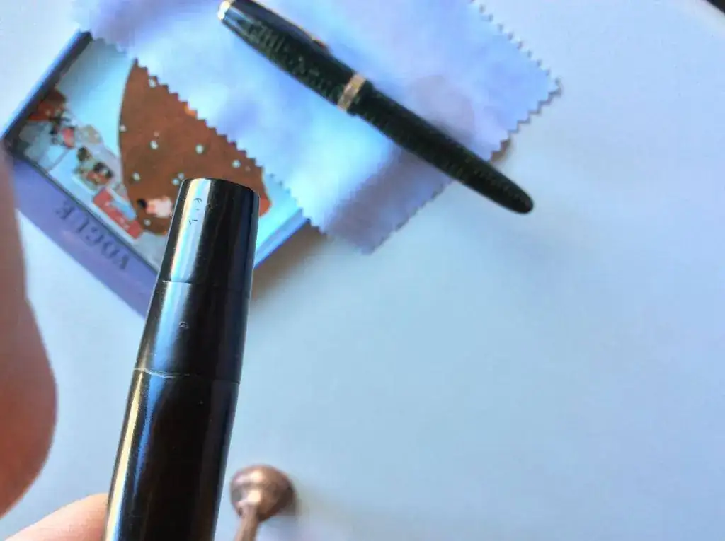 toquetteando la estrella que está en el capuchón, ha salido entera, no sé si esto quiere decir alguna cosa, es como si se hubiese fabricado aparte y posteriormente insertada dentro del capuchón, te pasó más fotos, pero que conste que me hace más ilusión la Parker que ves en las imágenes que la o lo que sea, te agradezco mucho el tiempo que has invertido en ayudarme, la L delante del number no aparece, hay algunas marcas, pero igual se las hice yo mordiendo de pequeño, no se lo que vale ni me interesa, pues no la vendería por nada (bueno es un decir) lo que más me gusta es que este tema que me está pareciendo interesentassimo ocupa parte de mi tiempo no sé cómo agradecerte tu atención, pero toda tu ayuda será bien recibida un abrazo