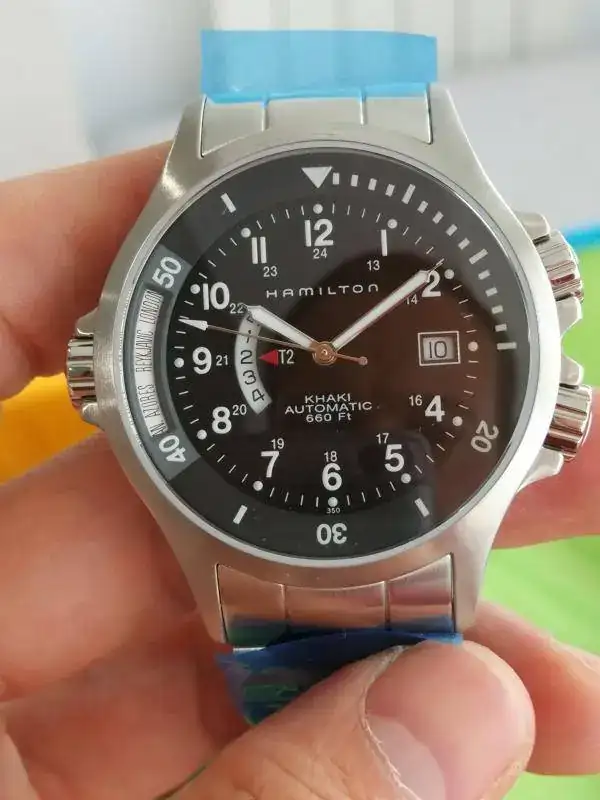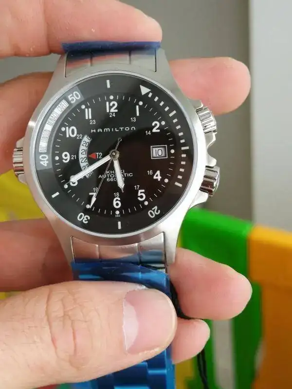 Se trata de un Hamilton de la serie Khaki Navy, un reloj pensado para el día a día con unas medidas fantásticas y un brazalete que le queda estupendo, si bien se le puede poner cualquier correa negra o marrón de piel, textil de diferentes colores… a este reloj le queda todo bien.