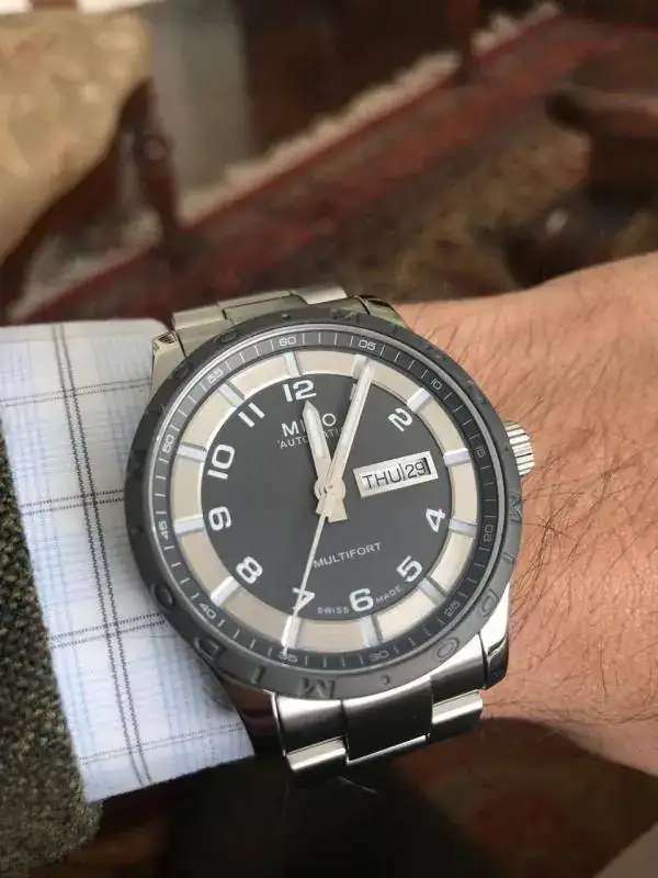 Hola, tiempos sin escribir. Les comento que luego de leer sus post me atreví y compré un nuevo reloj, esta vez usé la página jomashop y compré desde Chile. La experiencia fue buena, el envio demoró como 7 dias en llegar pero entre correos de Chile y aduana lo tuvieron 1 mes y cobraron como un 30% sobre el valor como impuestos. Aun así, al menos para Chile, resultó más económico que en joyerias locales (que son un robo). Se trata de un Mido Multifort automatico de 42 mm, y es una maravilla de reloj, distinto a lo que habitualmente uso. Sin aburrirlos más, algunas fotos.