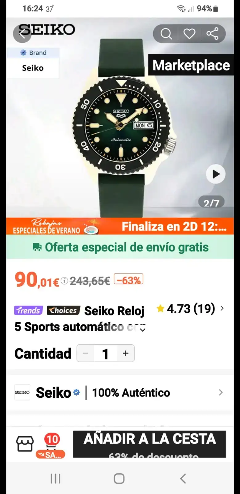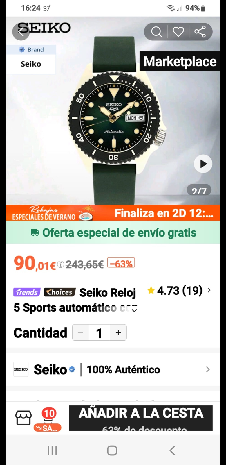 Seiko por lo que sea ha decidido desprenderse de ellos y los está derribando en el precio y es un reloj precioso.Pues en Sheim se consigue todavía a mejor precio. Esto es de locos, 90 euros puesto en casa