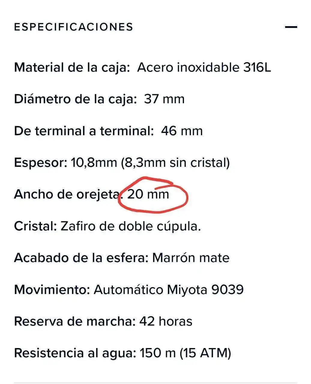 Me gusta. Lo que no me cuadra es su distancia entre asas, que parece ser de 22 mm., en cualquier caso demasiado grande para un reloj de 37 de diametro.
