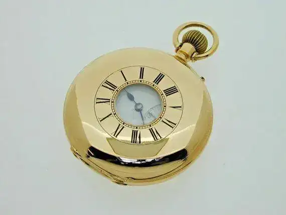 La tercera posibilidad eran relojes de Seniora Half-Hunter, la tapa de la esfera tenia un agujero pequeno con cristal, como los Hunter o saboneta, la corona en posicion tres y el segundo pequeno a las seis.