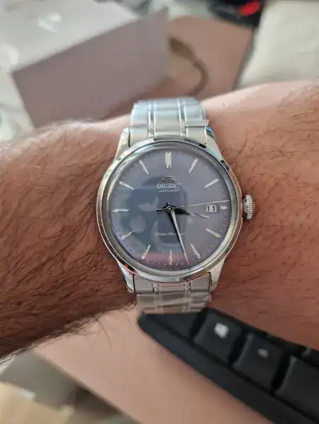 Os dejo por aquí la foto del Orient Bambino 38mm azul con armis.