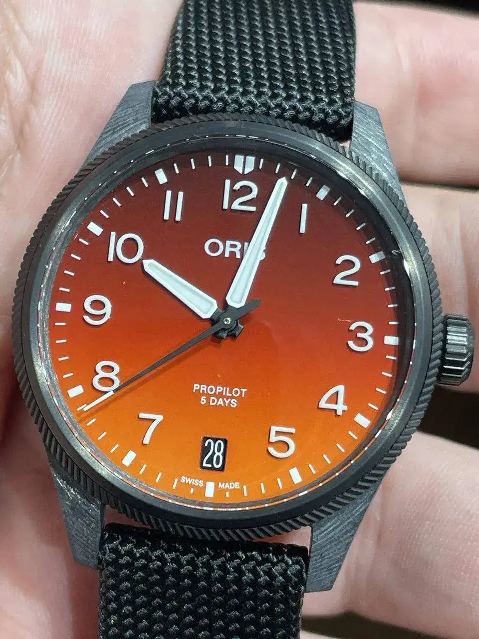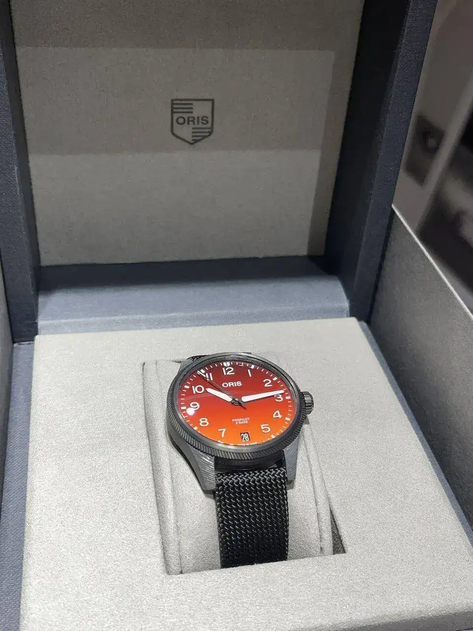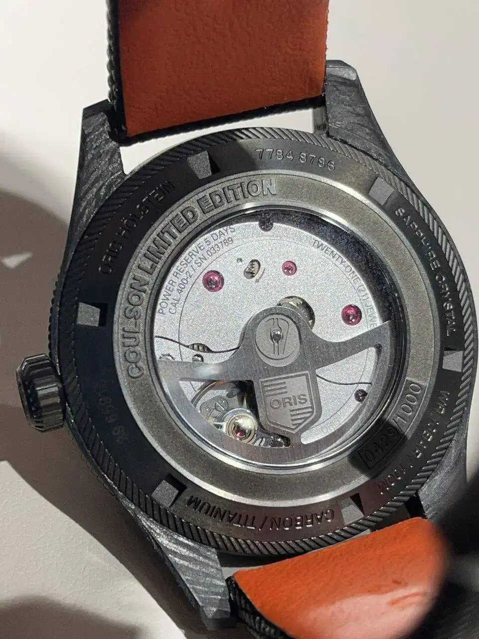Además en esta ocasión con una caja de fibra de carbono y titanio ( como me gusta eso) y su calibre manufactura , pero además con un dial naranja-rojizo, que estoy deseando ver en vivo.