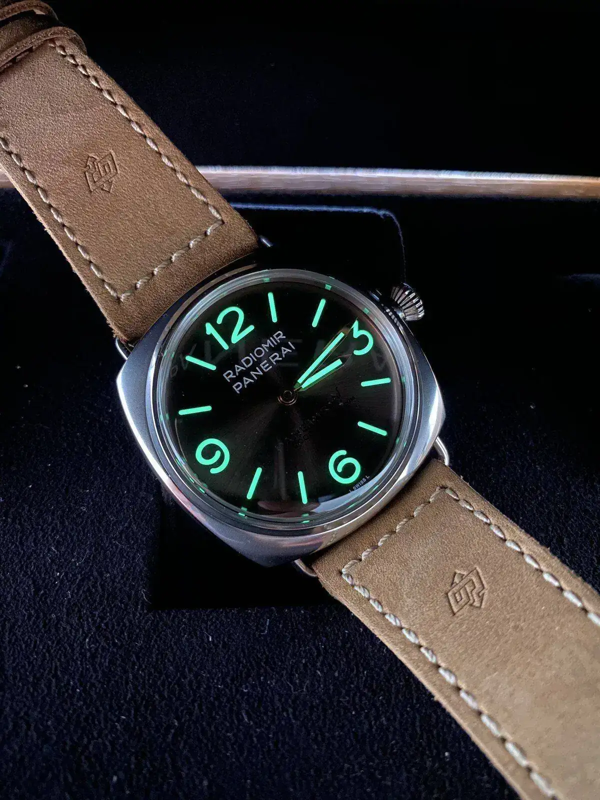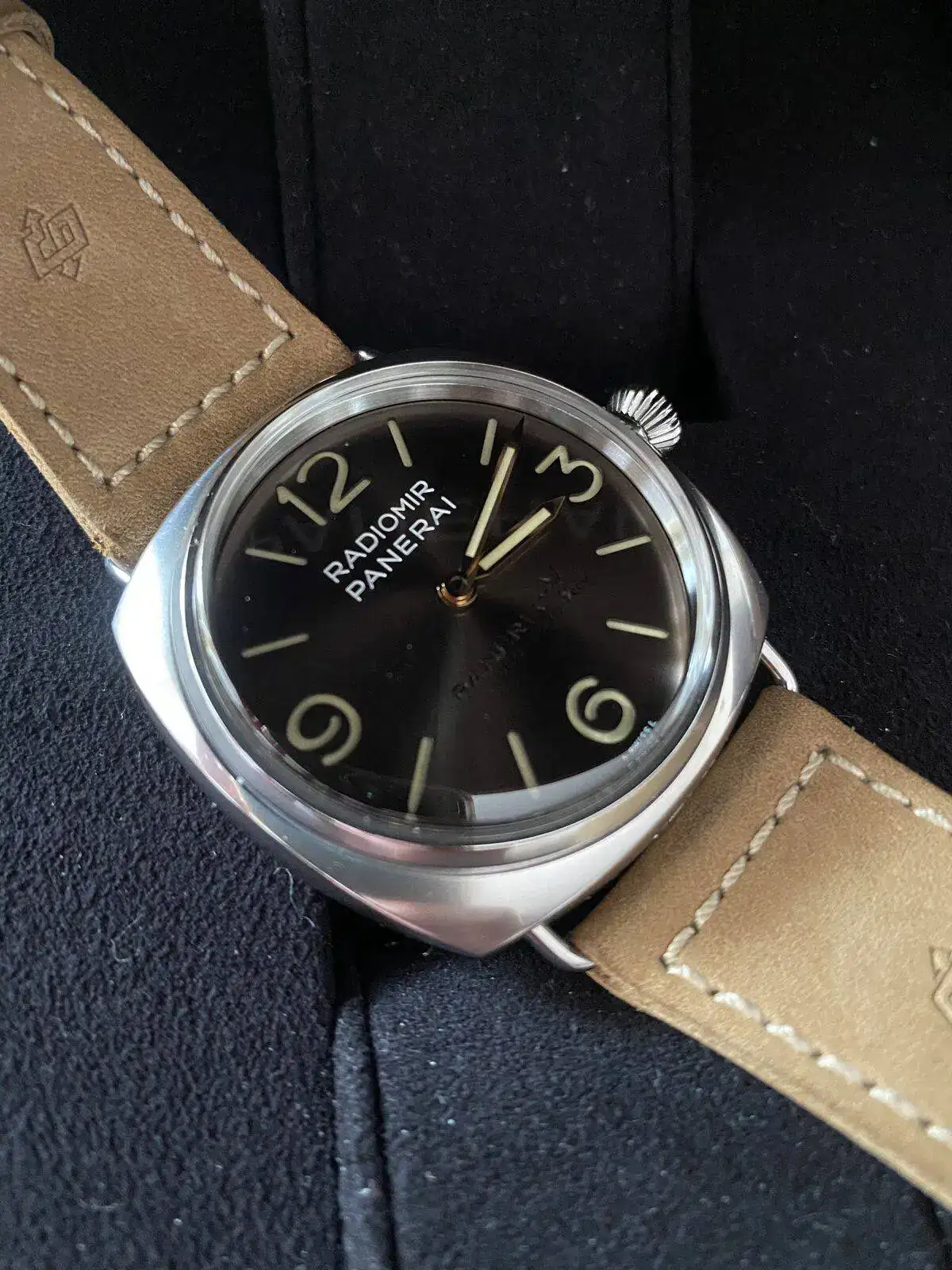 La caja Radiomir es de acero pero tratada para simular un efecto vintage.